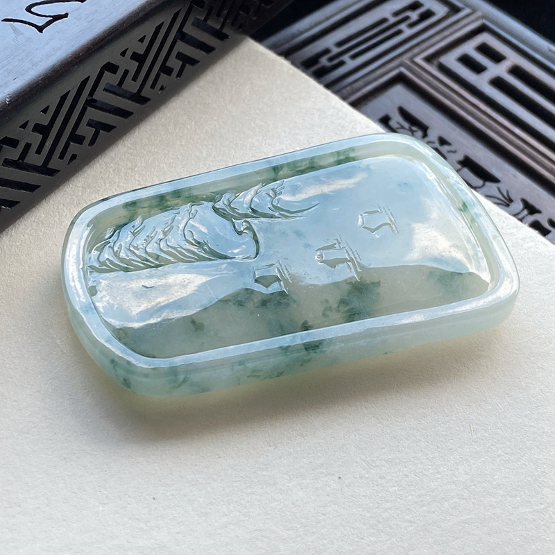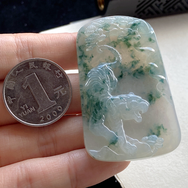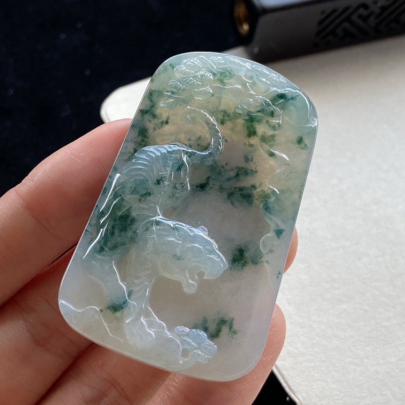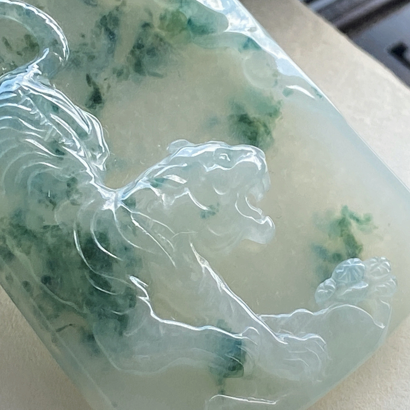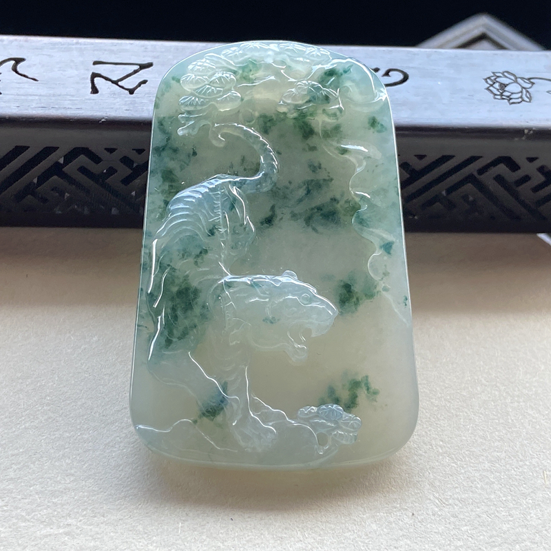 • 糯冰种飘花翡翠虎虎生威吊坠