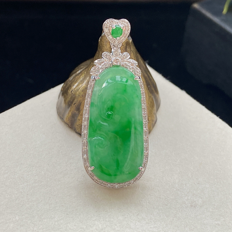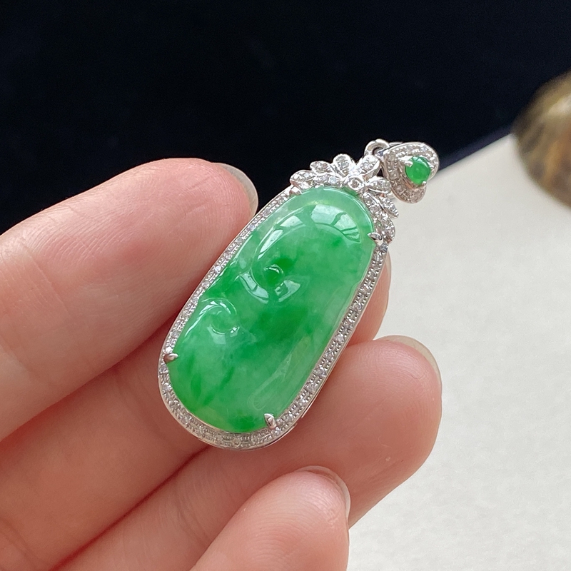 • 18K糯冰种浅阳绿翡翠如意吊坠