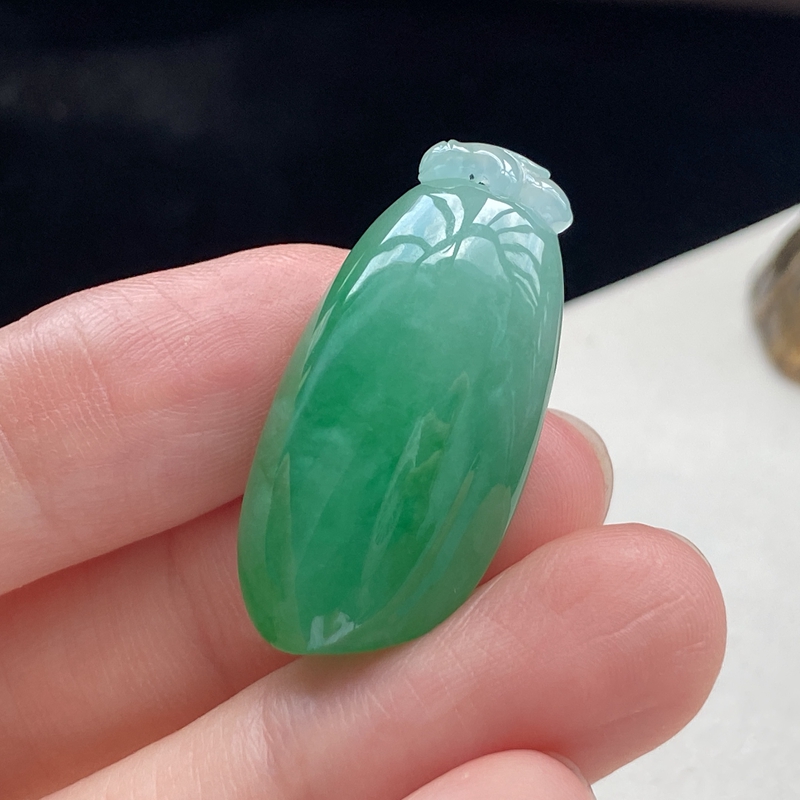 • [名  称] 糯冰种翠绿翡翠福瓜吊坠