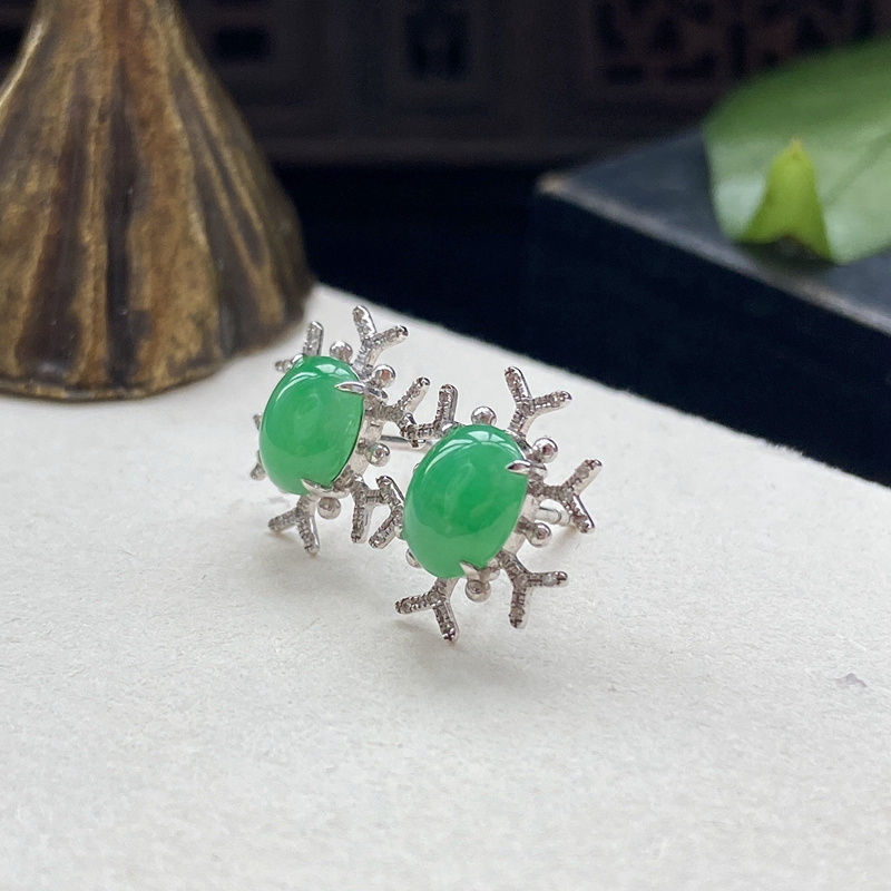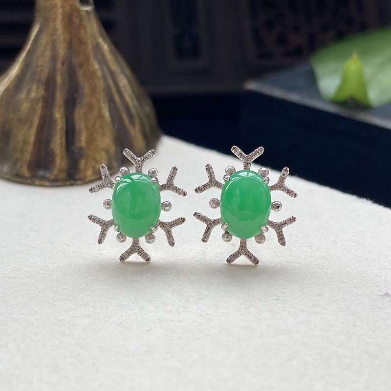 • [名  称] 18K糯冰种浅绿翡翠耳钉