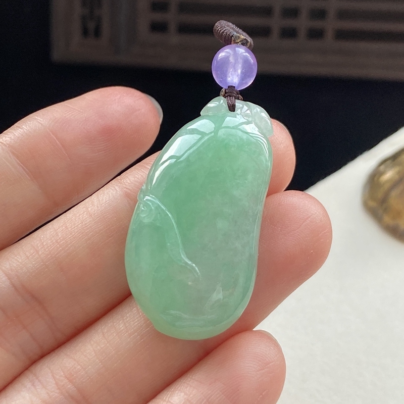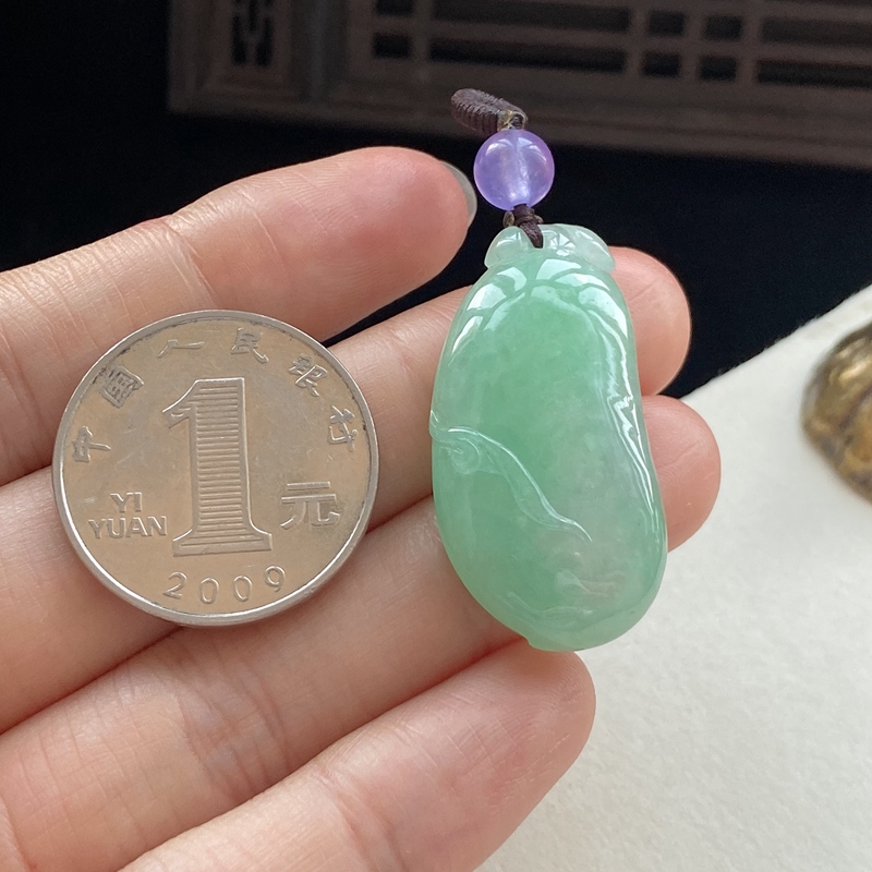 • [名  称] 糯冰种浅绿翡翠福瓜吊坠