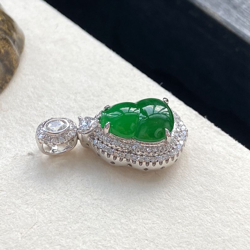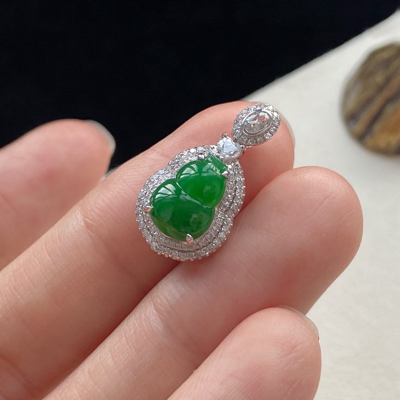 • 18K糯冰种翠绿翡翠葫芦吊坠