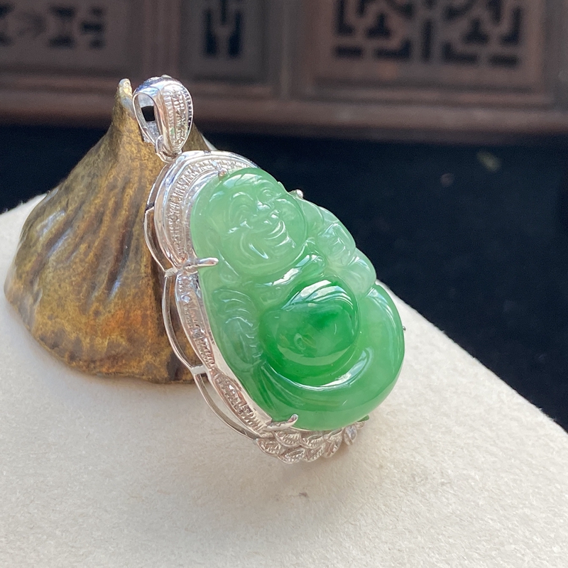 • [名  称] 18K糯冰种豆绿翡翠弥勒佛吊坠