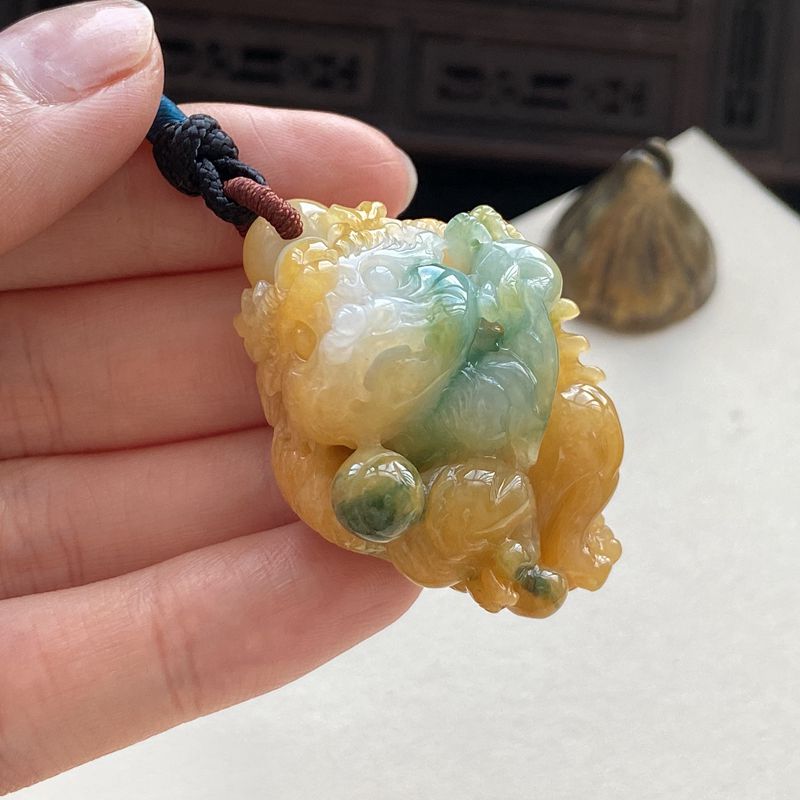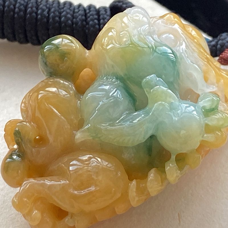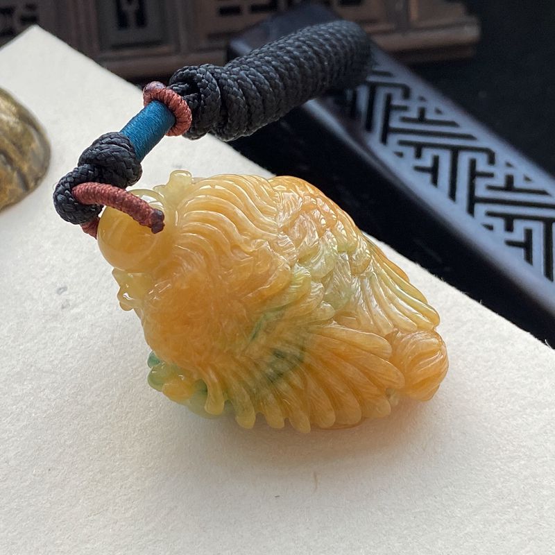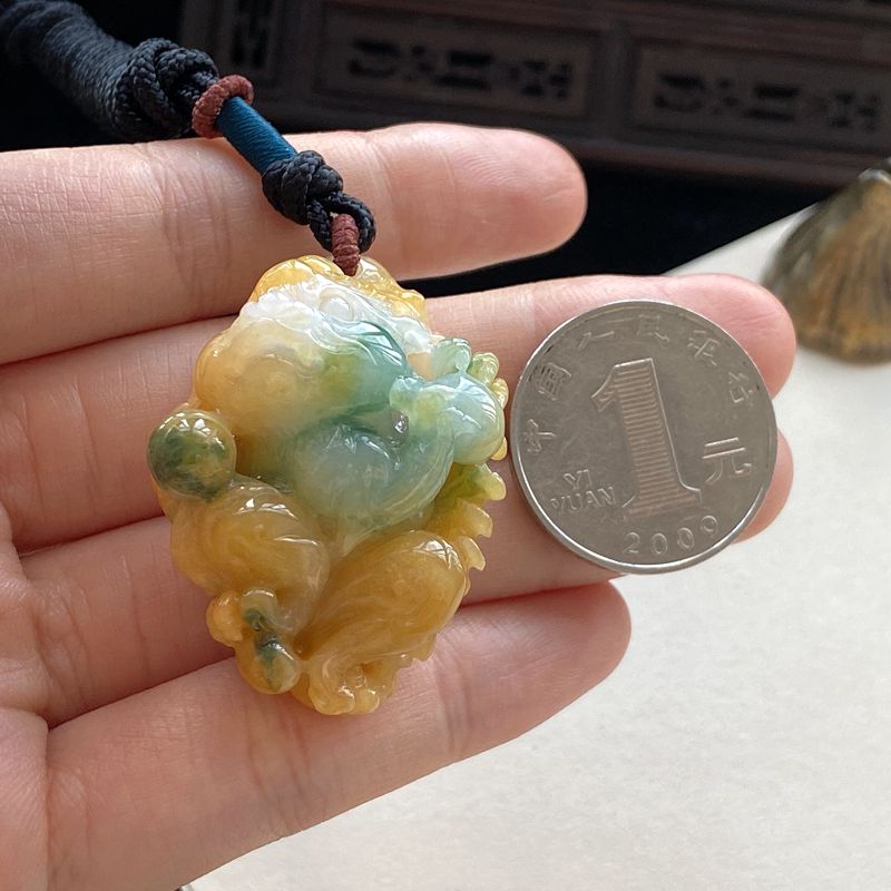 • 糯冰种黄加绿翡翠有求必应吊坠