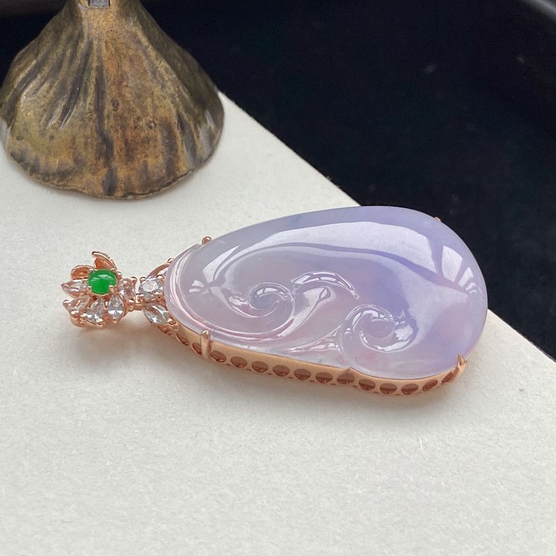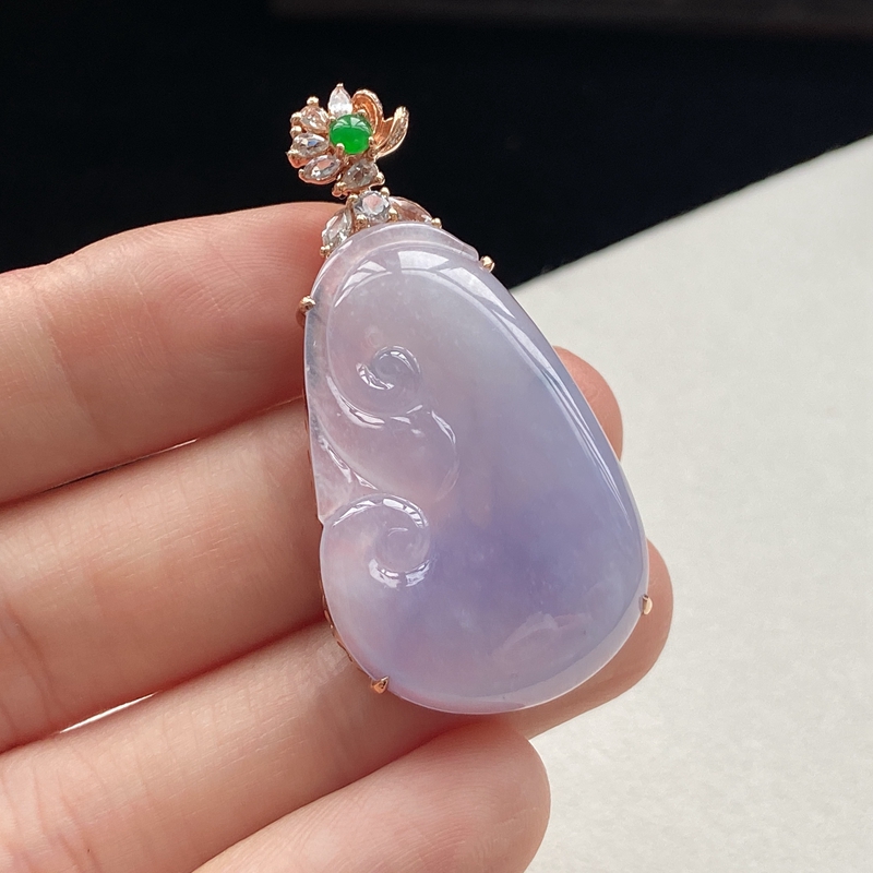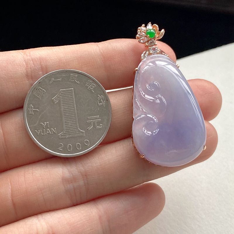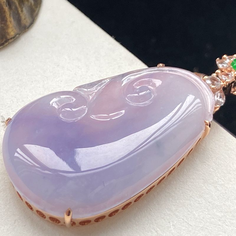 • 18K糯冰种紫罗兰翡翠如意吊坠