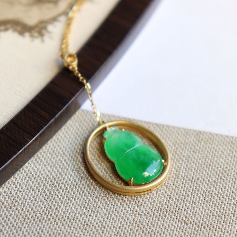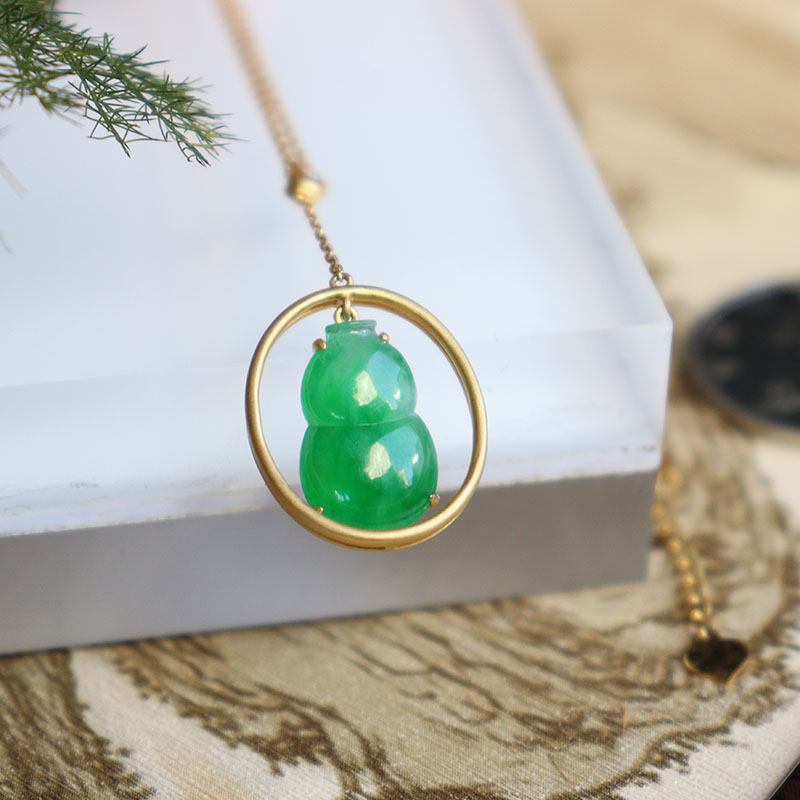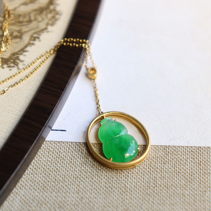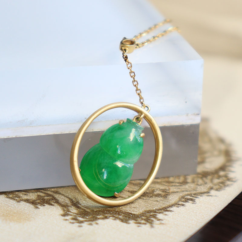 • 18k糯冰翠绿翡翠葫芦项链