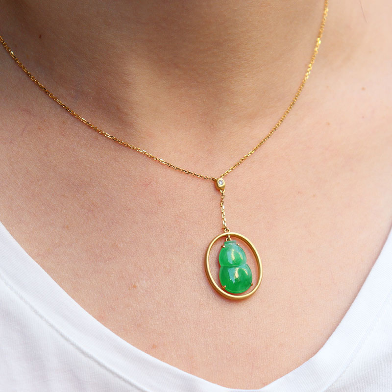 • [名  称] 18k糯冰翠绿翡翠葫芦项链