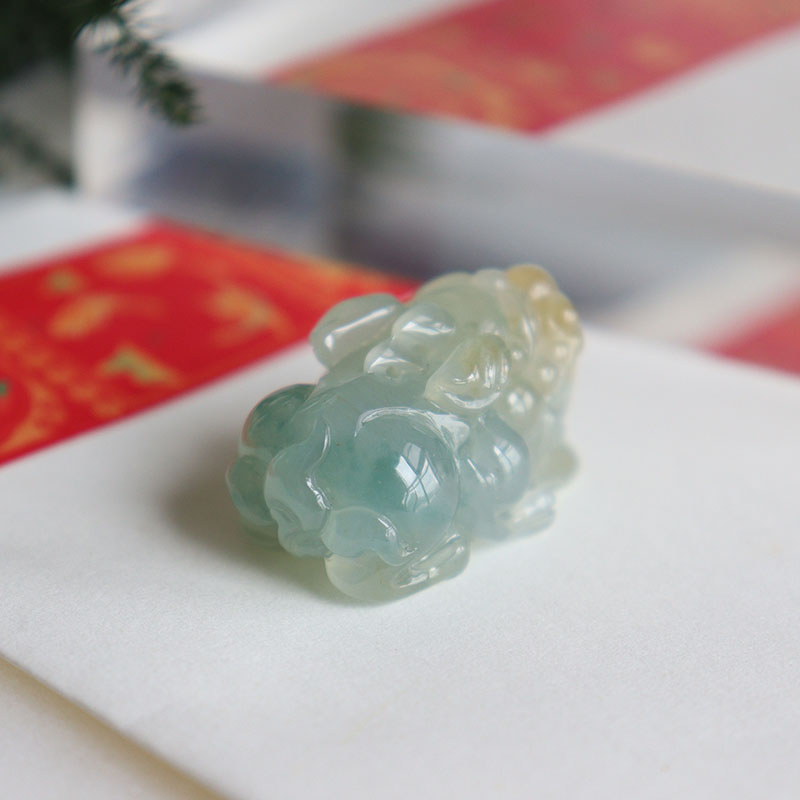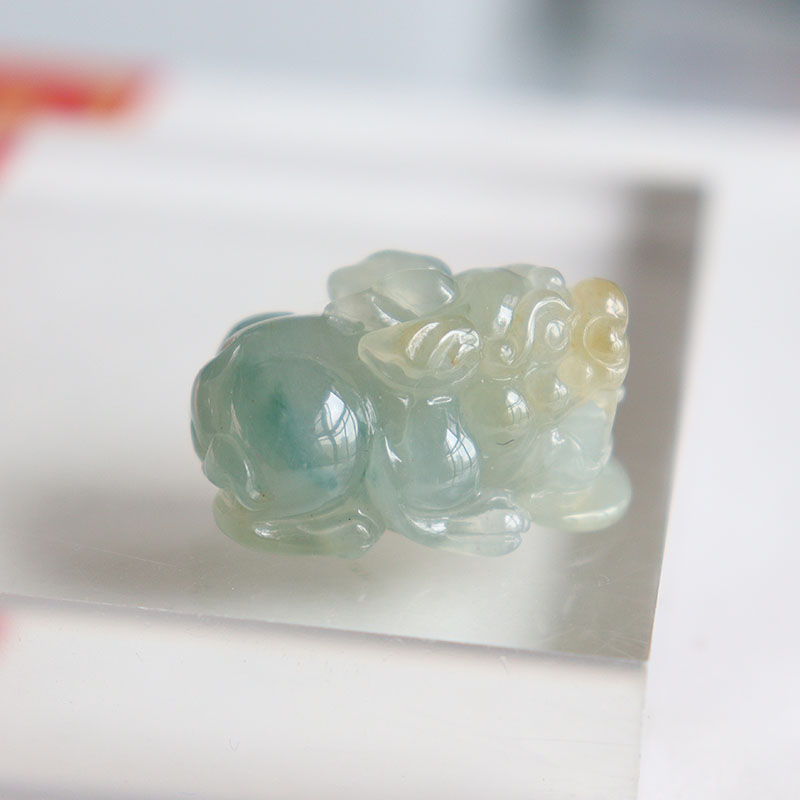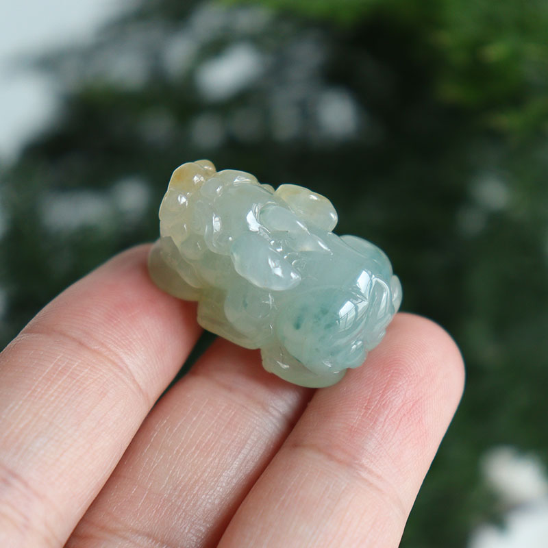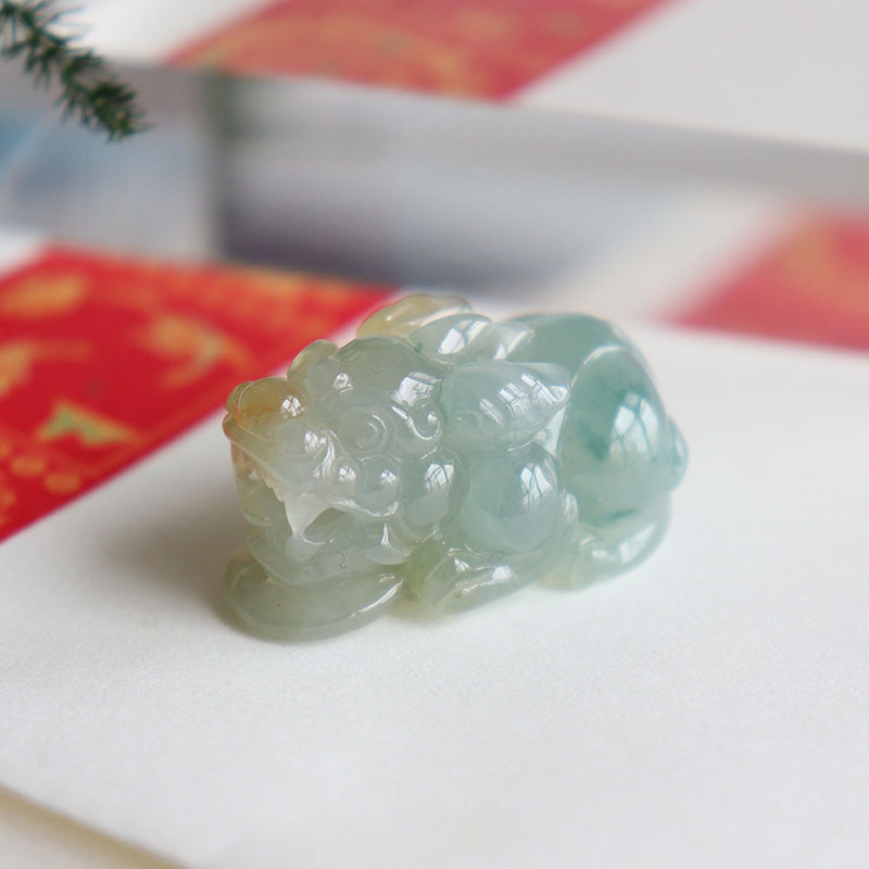 • 糯冰种飘花翡翠貔貅吊坠