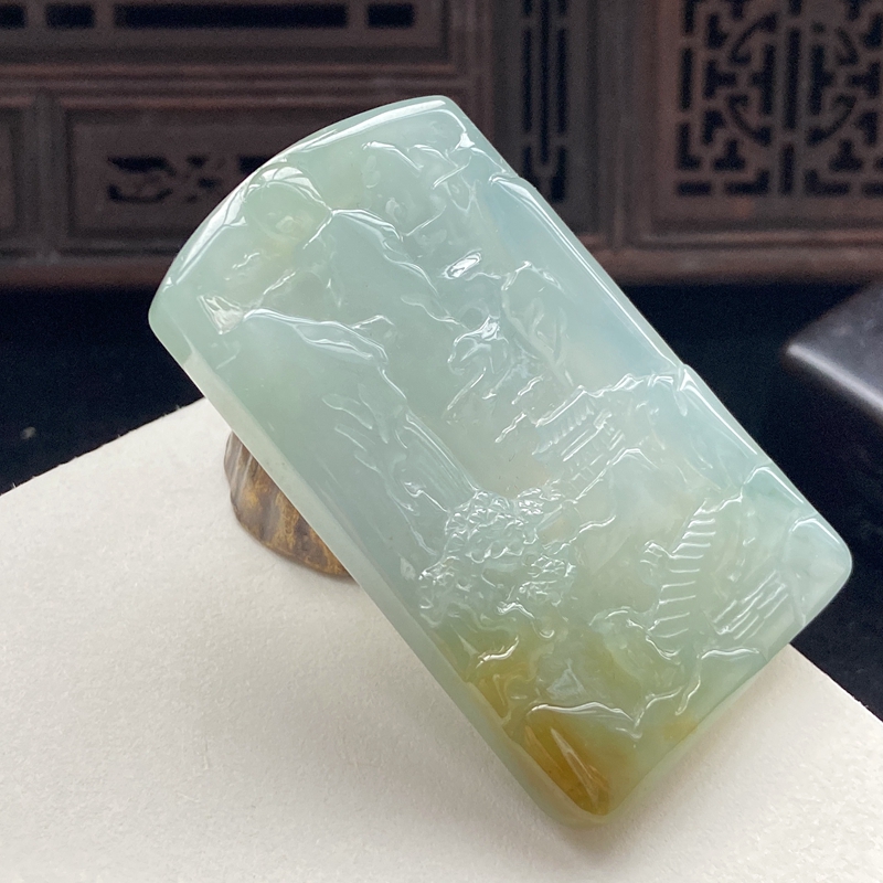 • 糯冰种黄翡山水吊坠