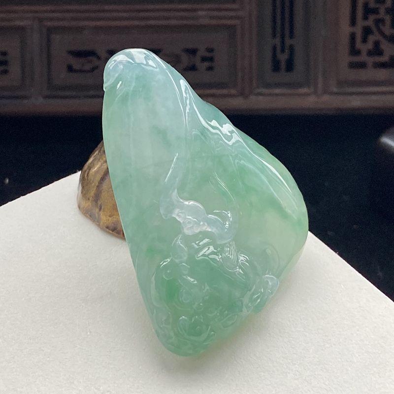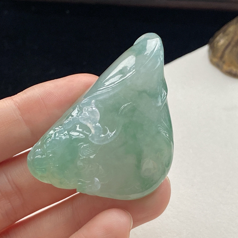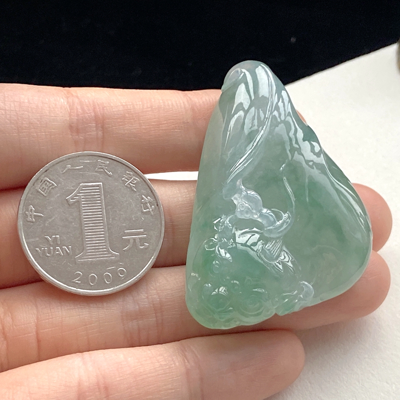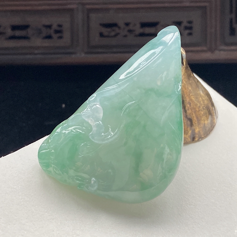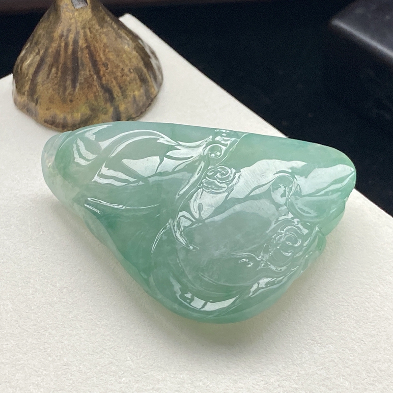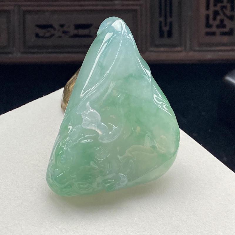 • 糯冰种浅绿翡翠瑞兽吊坠