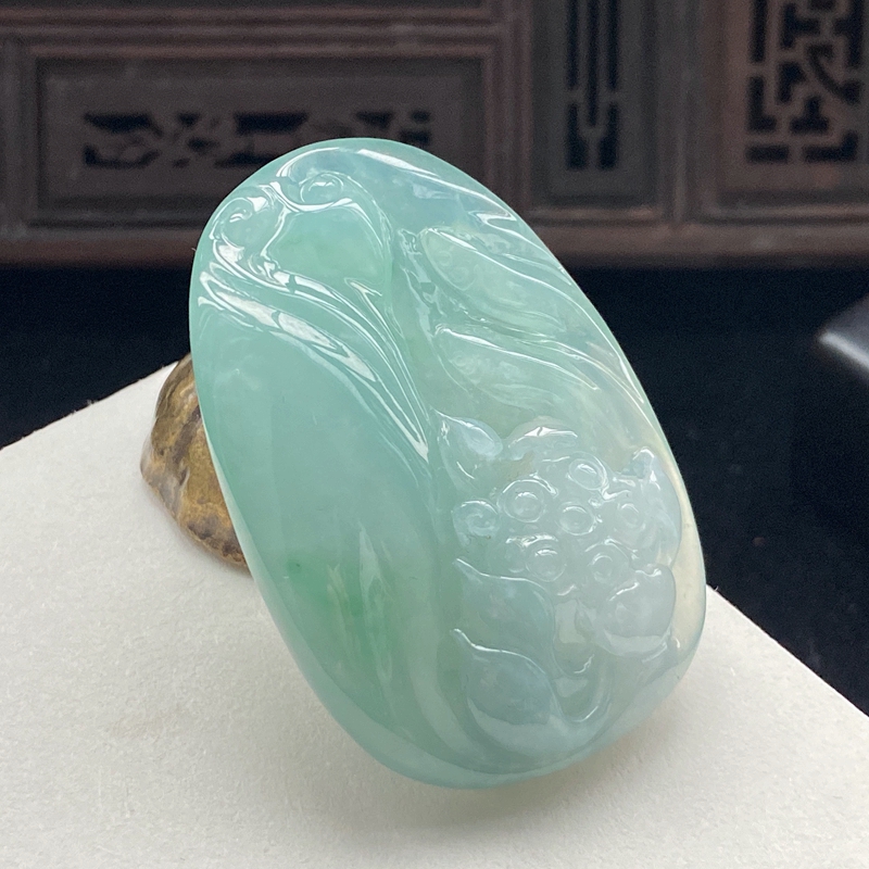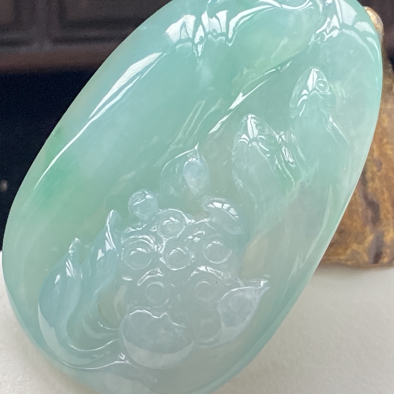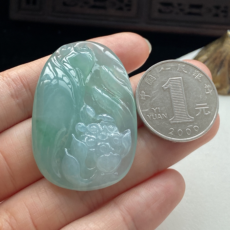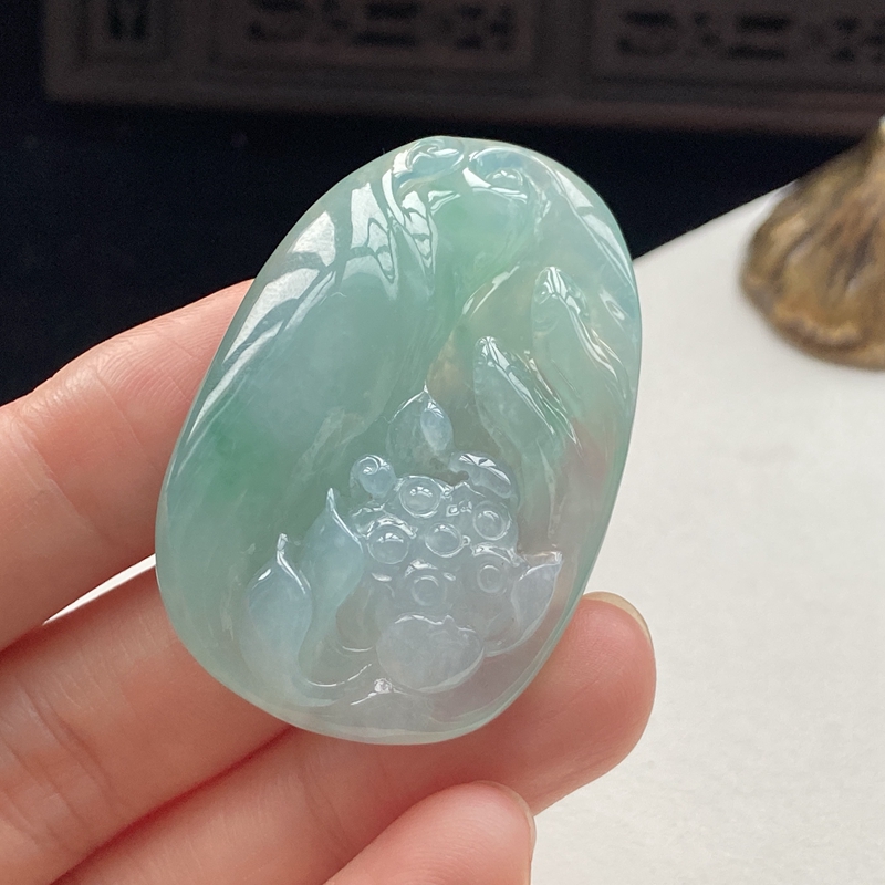 • [名  称] 糯冰种浅绿翡翠连年有余吊坠