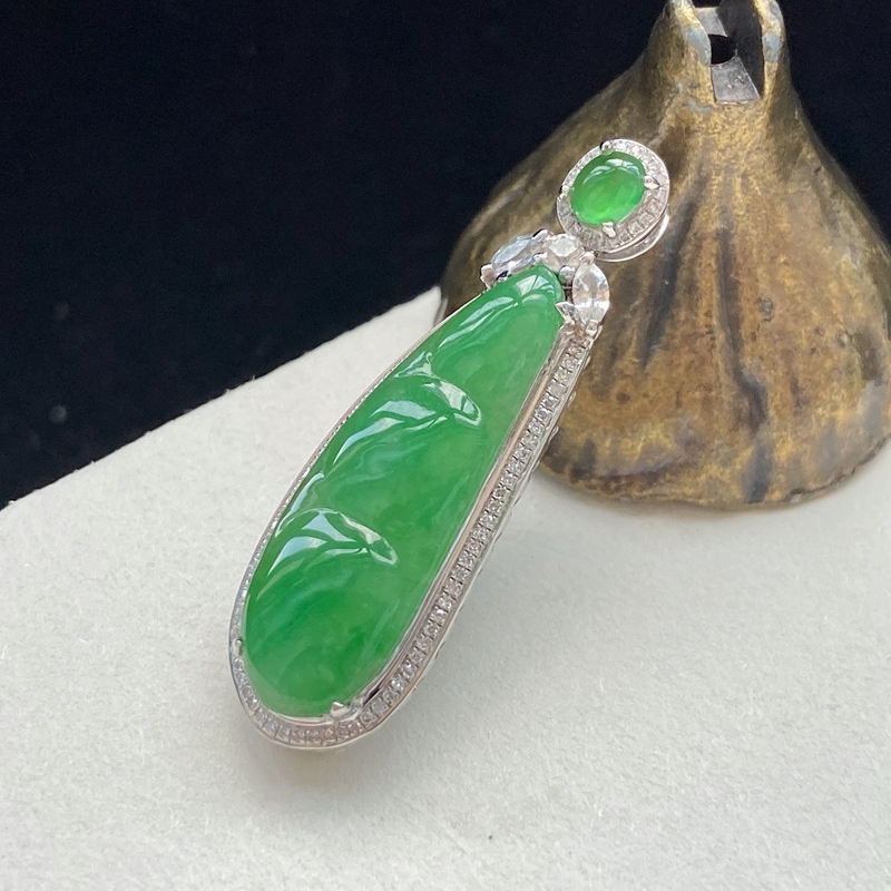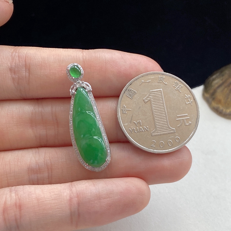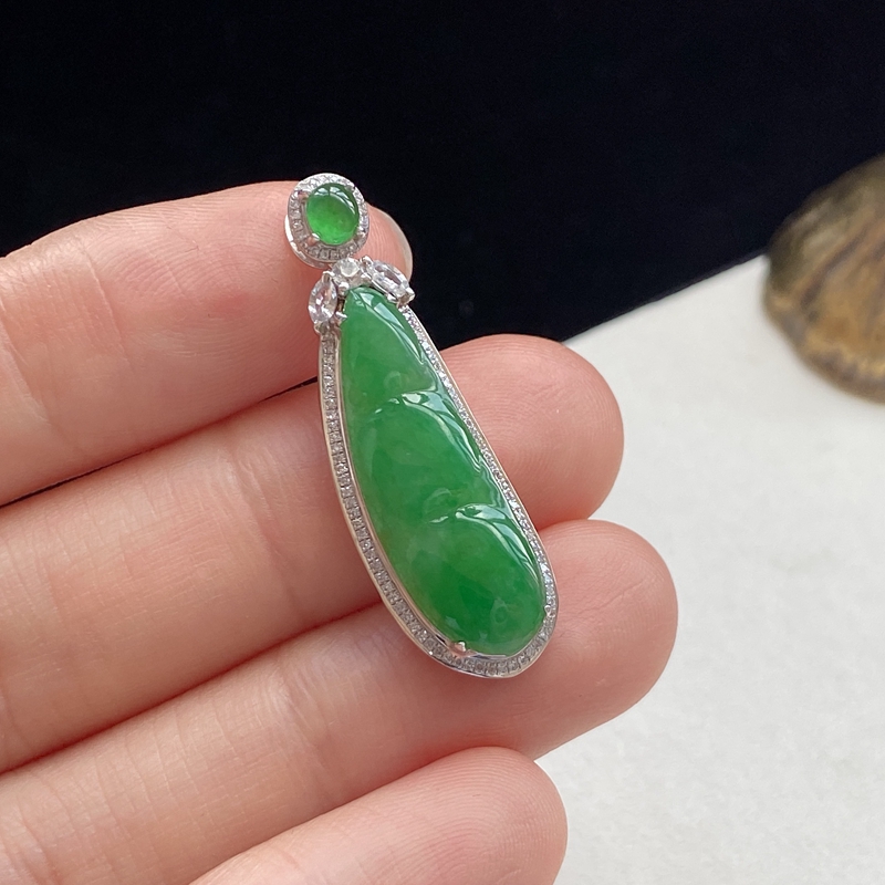 • [名  称] 18K糯冰种浅绿翡翠福豆吊坠