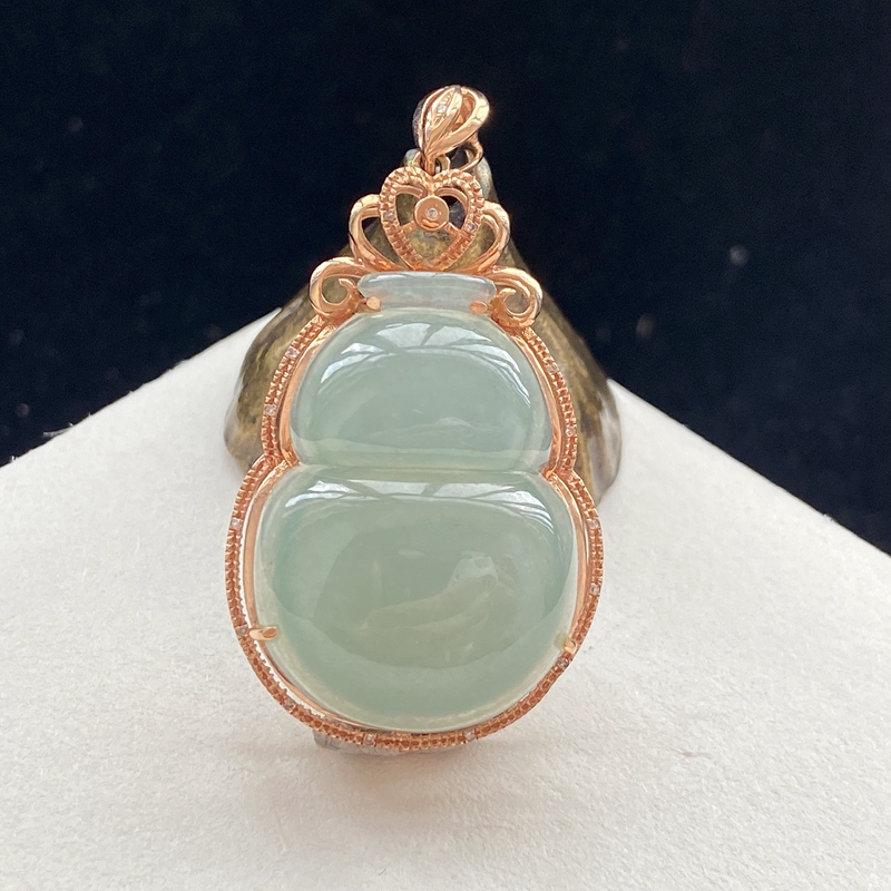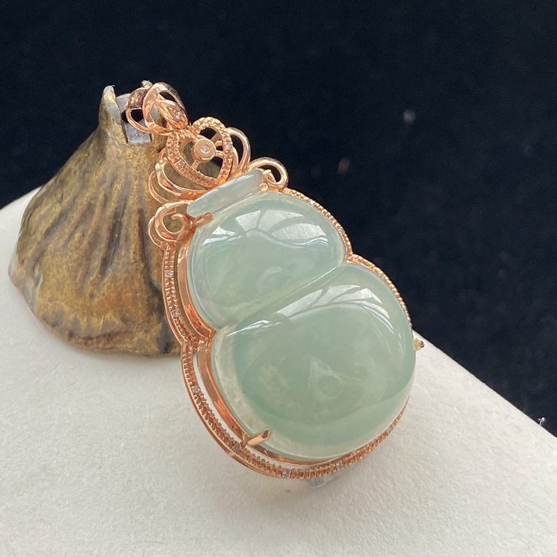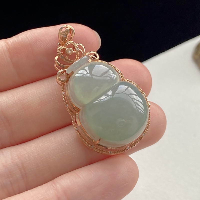 • 18K糯冰种浅水绿翡翠葫芦吊坠