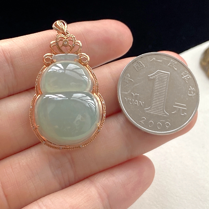 • [名  称] 18K糯冰种浅水绿翡翠葫芦吊坠