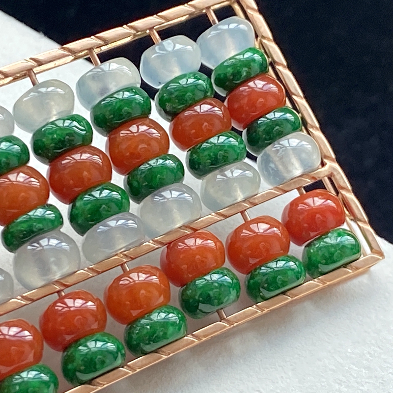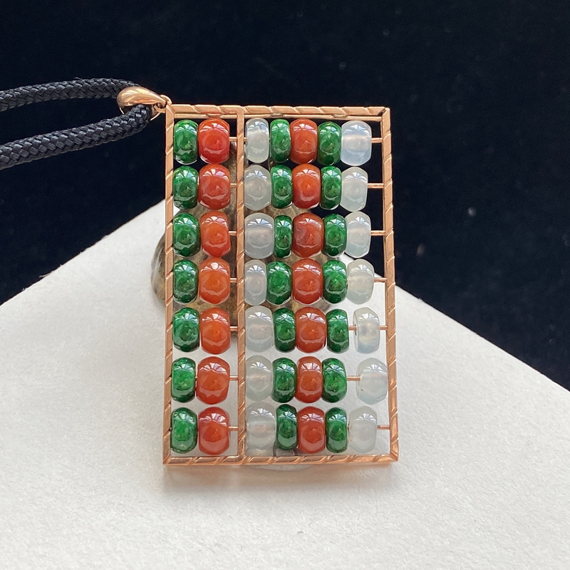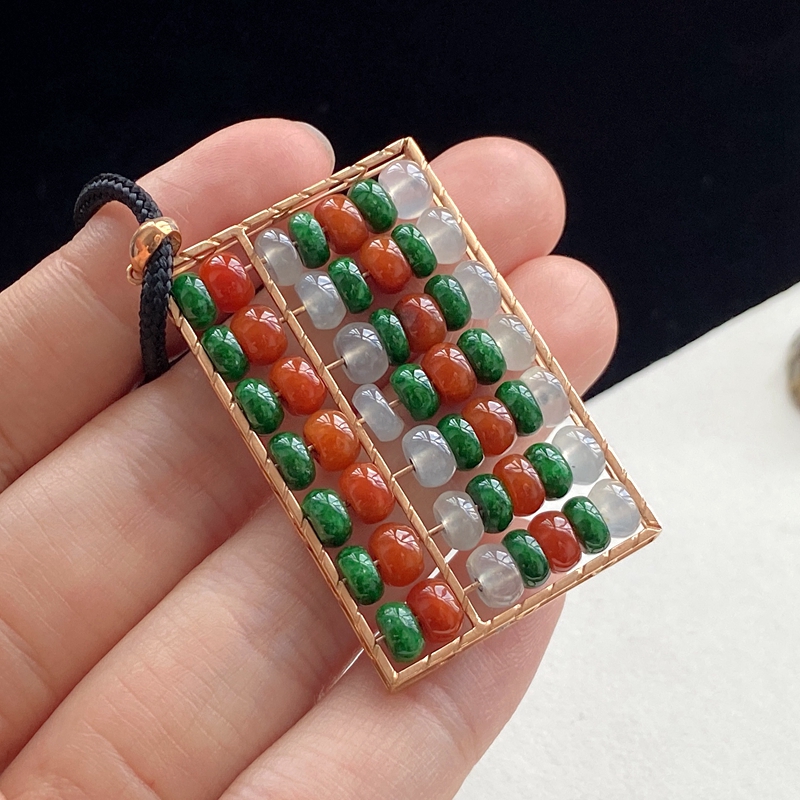 • 18K糯冰种三彩翡翠精打细算吊坠