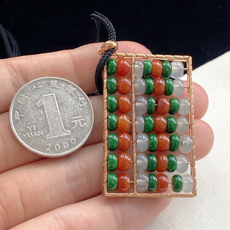 • [名  称] 18K糯冰种三彩翡翠精打细算吊坠