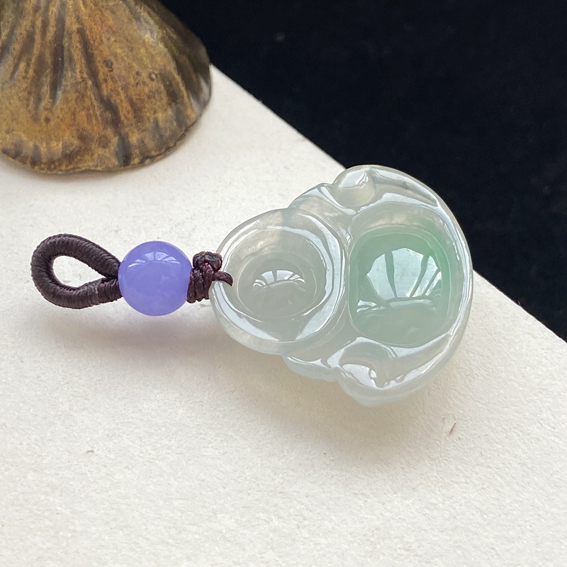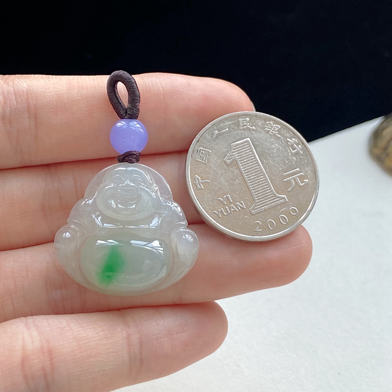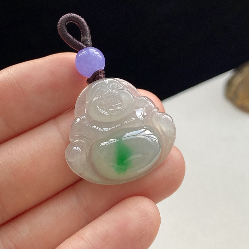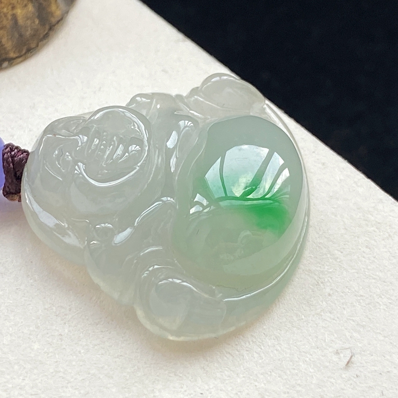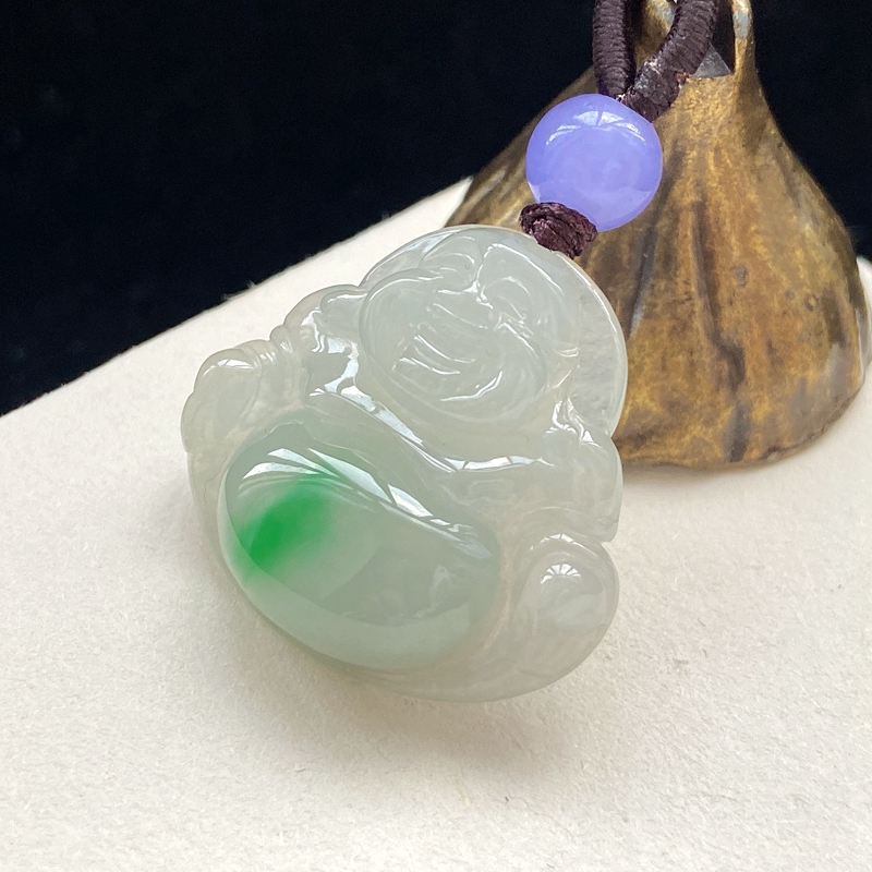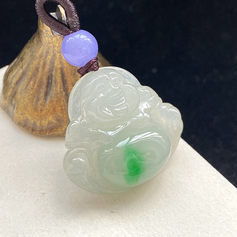 • 糯冰种飘翠翡翠弥勒佛吊坠