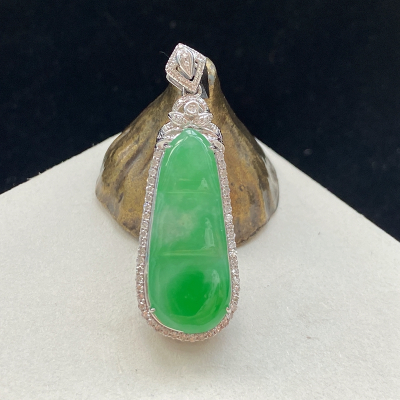• 18K糯冰种阳绿翡翠福豆吊坠