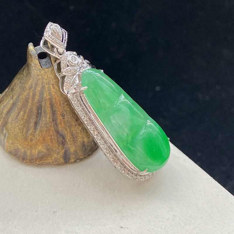 • [名  称] 18K糯冰种阳绿翡翠福豆吊坠