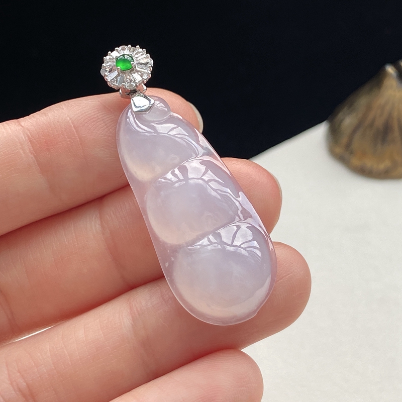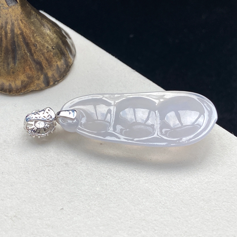 • 18K糯冰种翡翠福豆吊坠