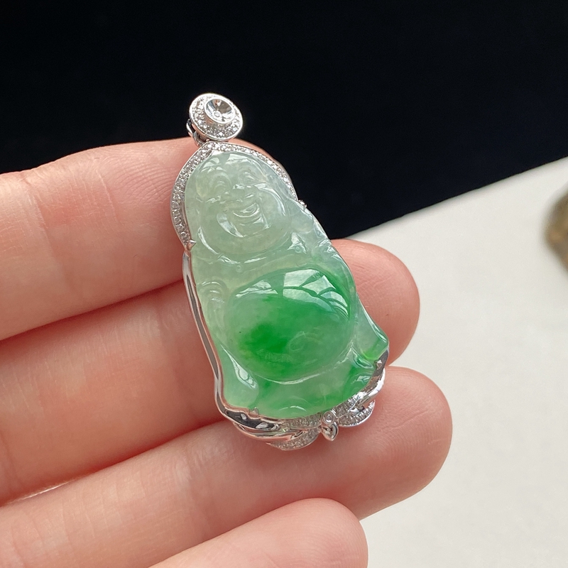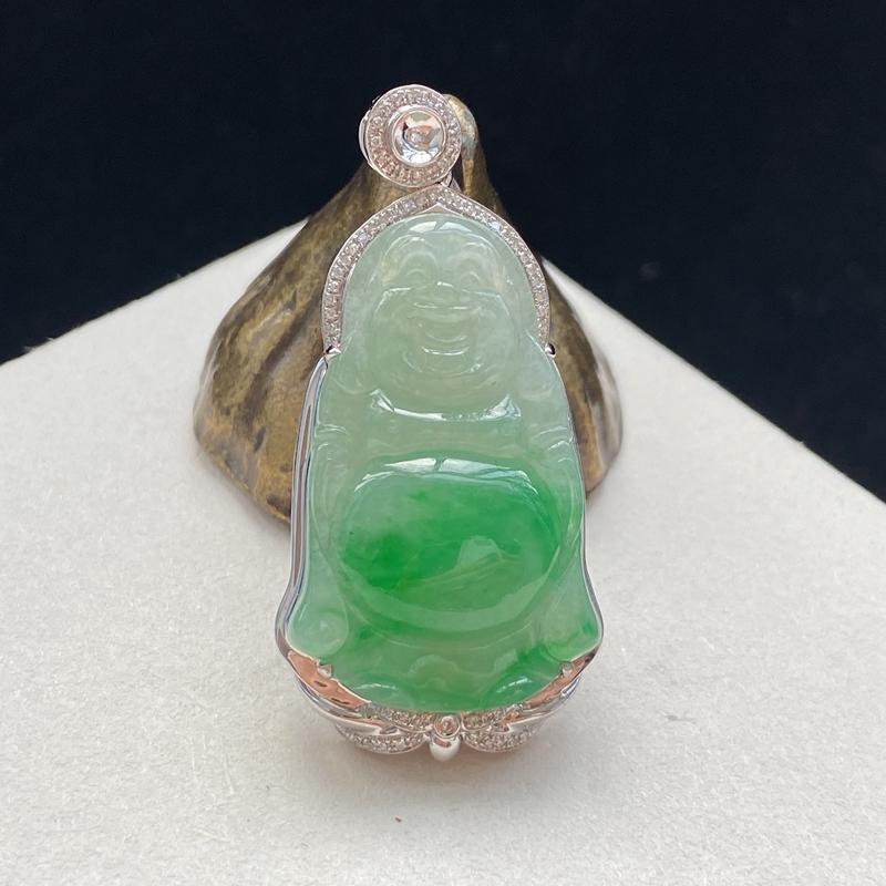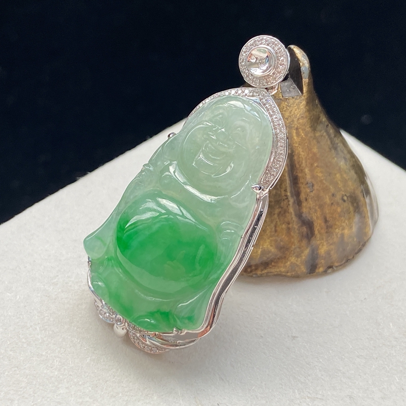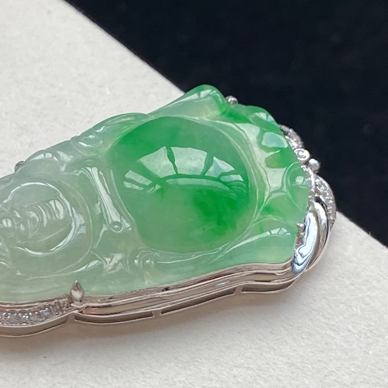 • [名  称] 18K糯冰种翠绿翡翠弥勒佛吊坠