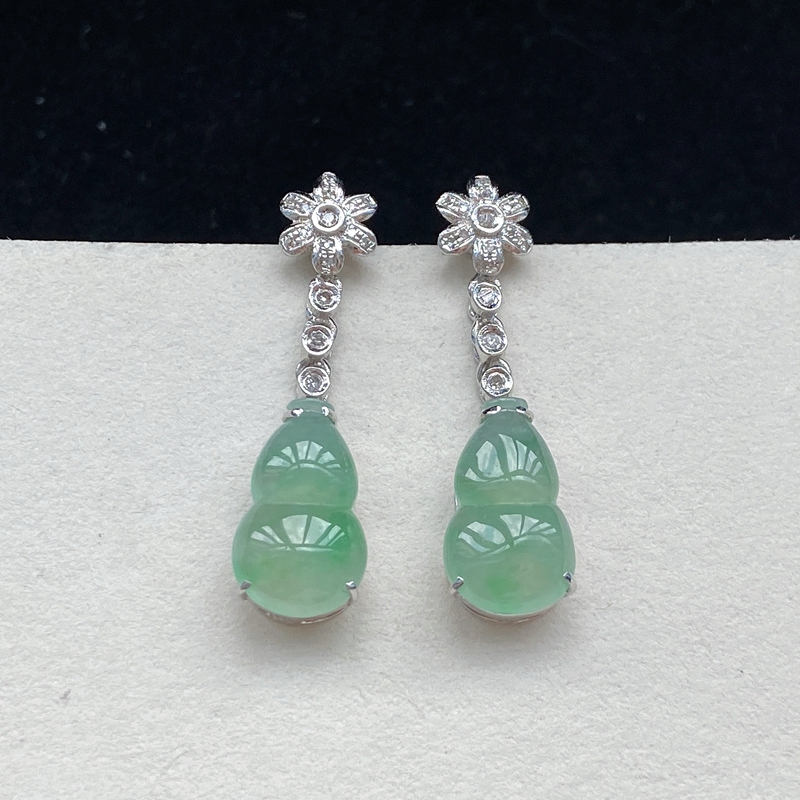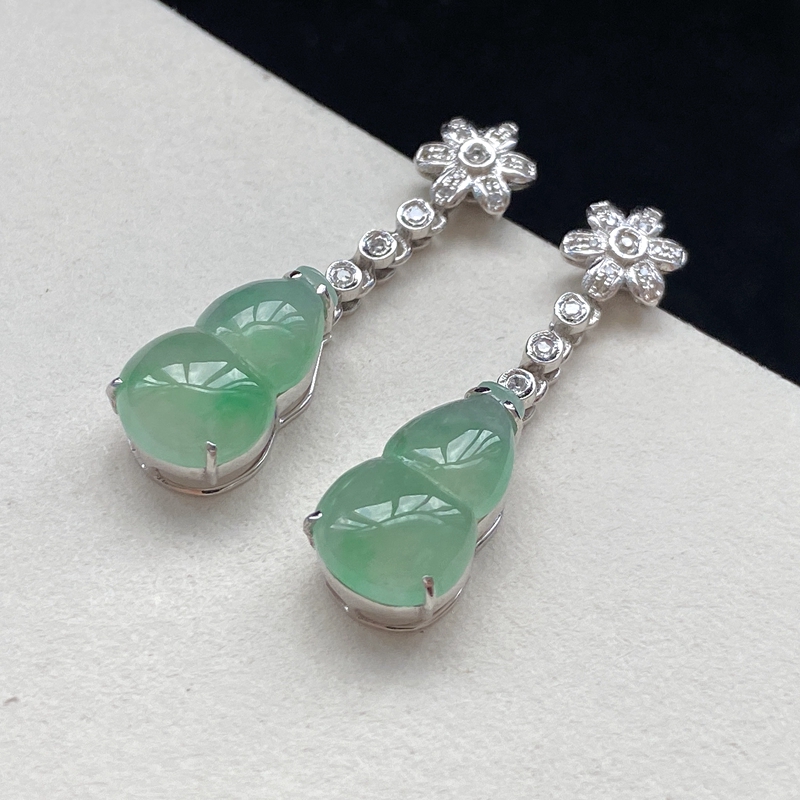 • 18K糯冰种浅绿翡翠葫芦耳坠