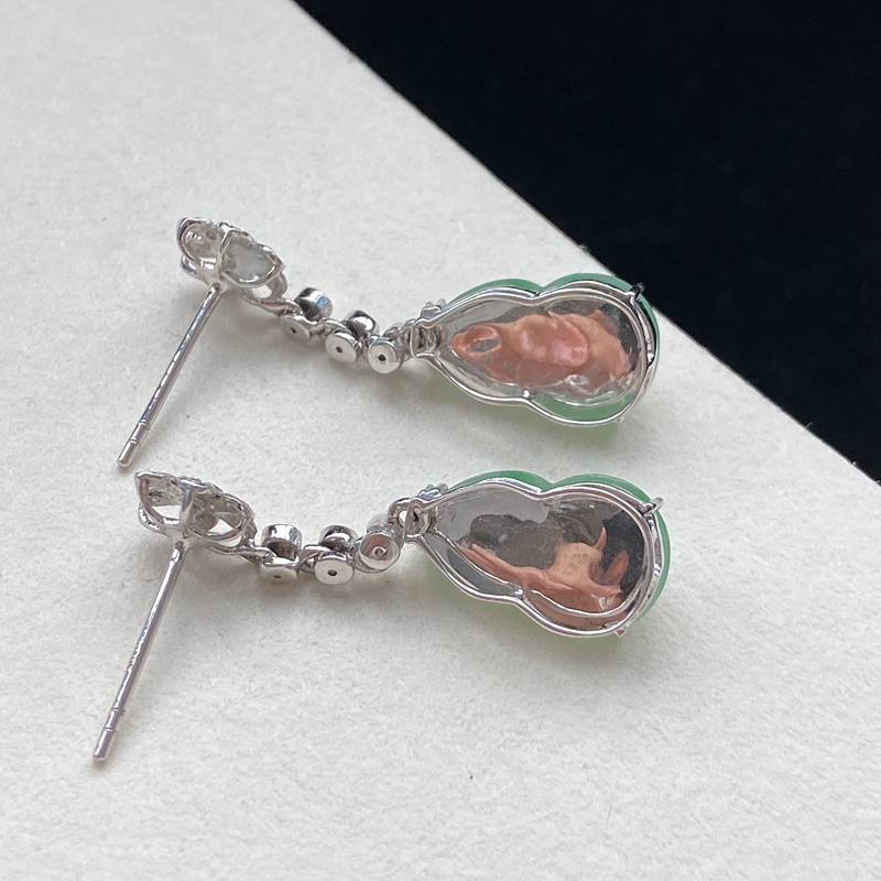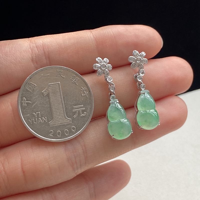 • [名  称] 18K糯冰种浅绿翡翠葫芦耳坠