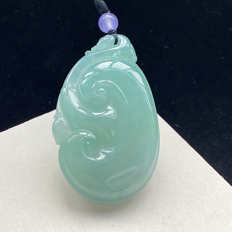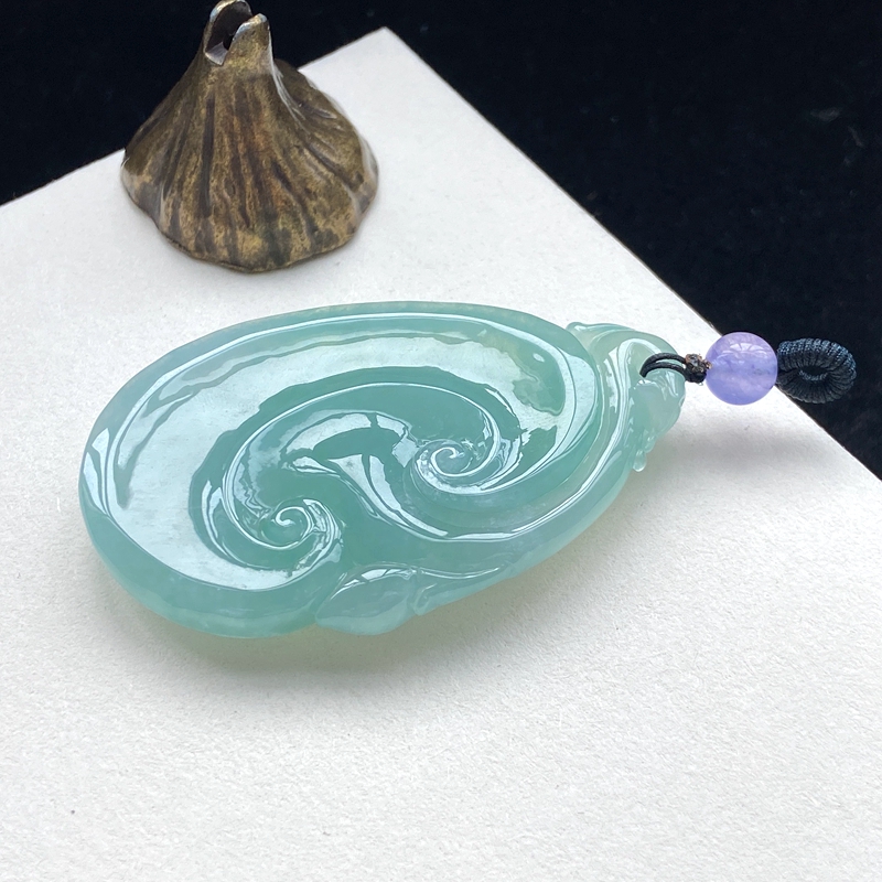 • [名  称] 糯冰种浅绿翡翠如意吊坠
