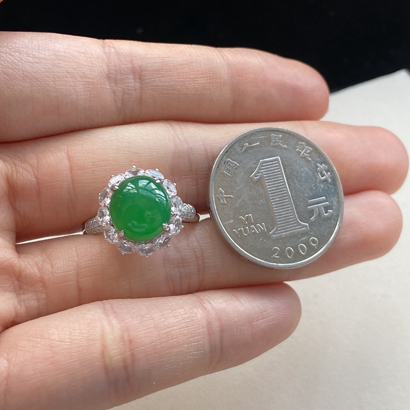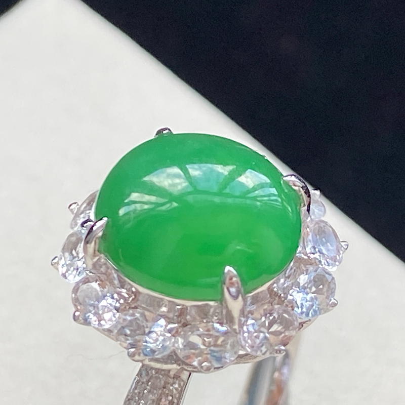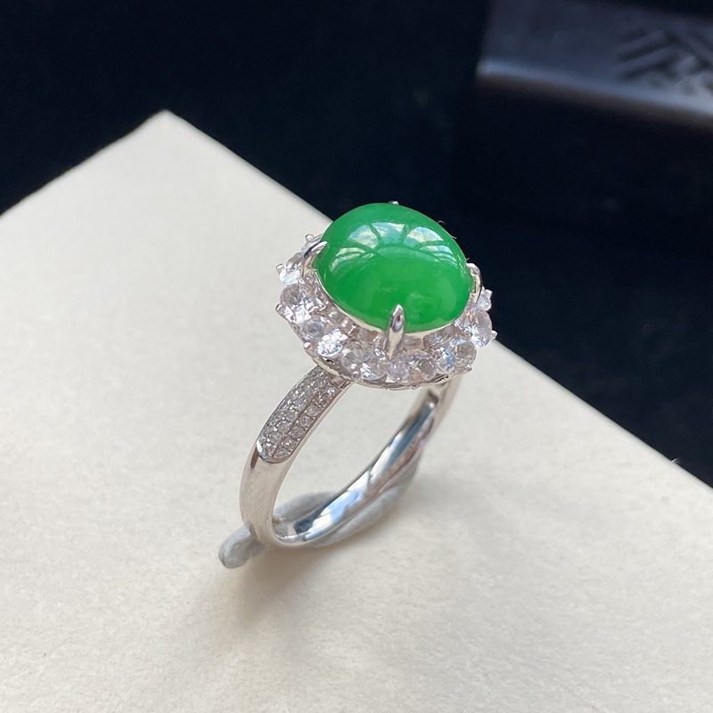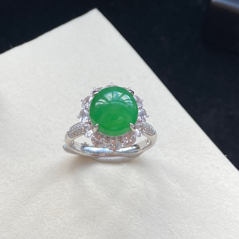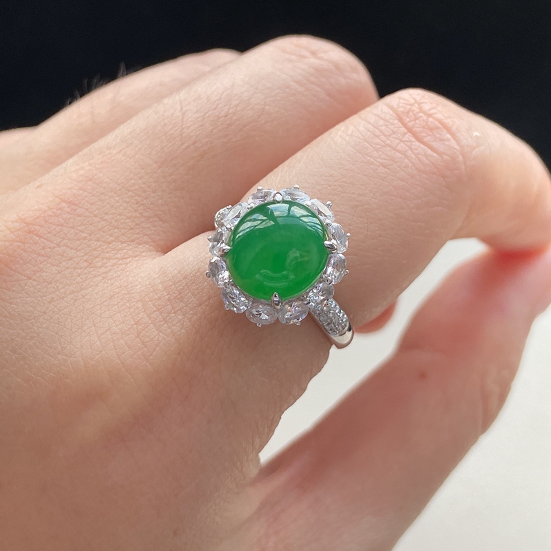 • 18K糯冰种翠绿翡翠戒指