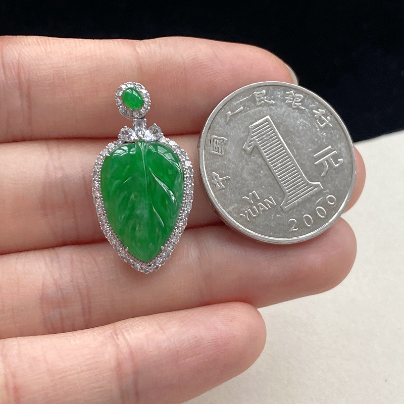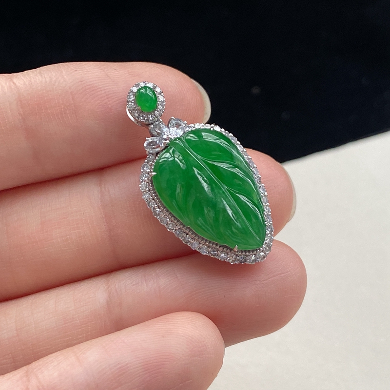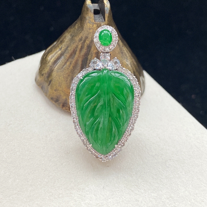 • 18K糯冰种翠绿翡翠金枝玉叶吊坠