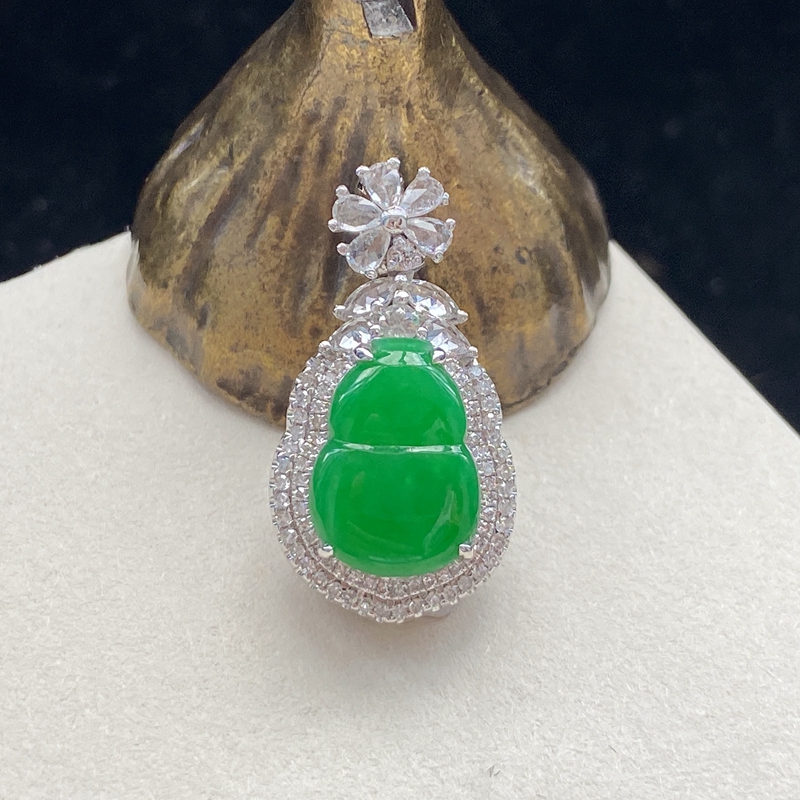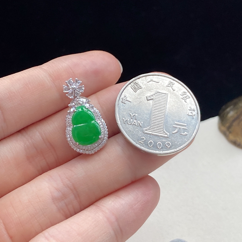 • [名  称] 18K糯冰种翠绿翡翠葫芦吊坠