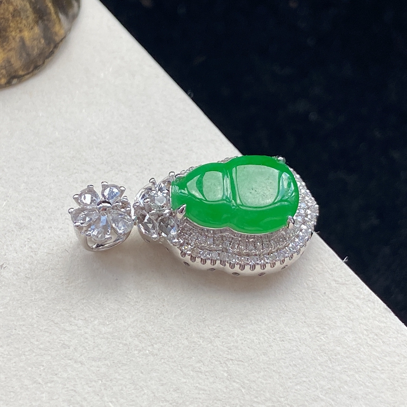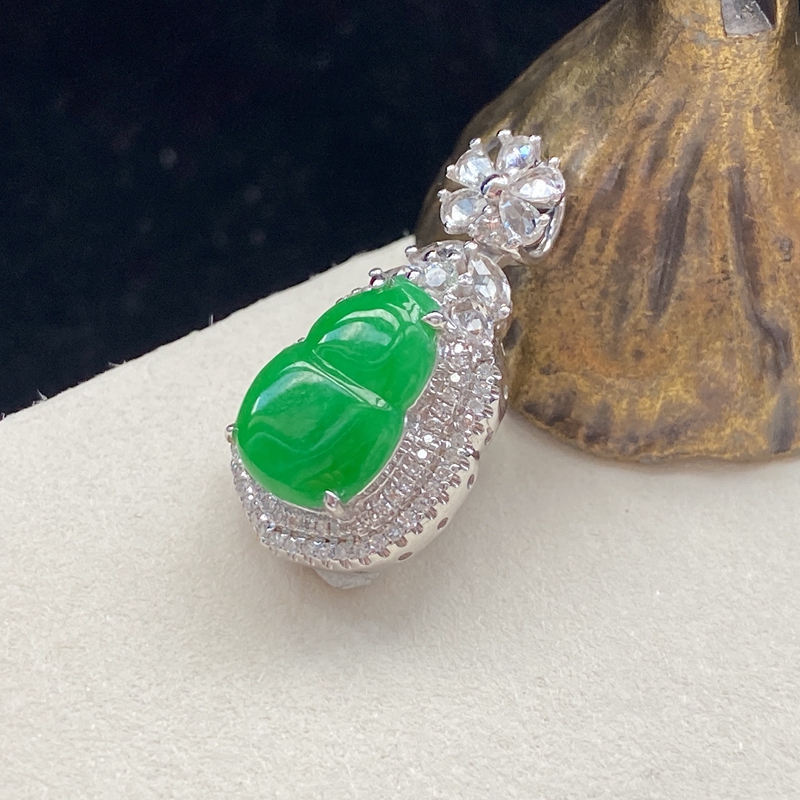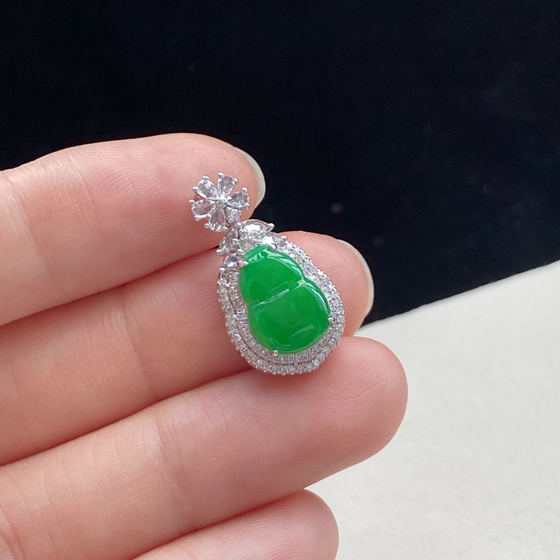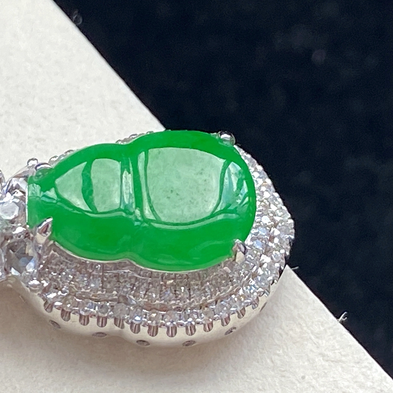 • 18K糯冰种翠绿翡翠葫芦吊坠