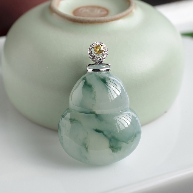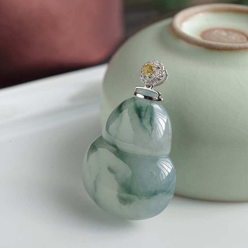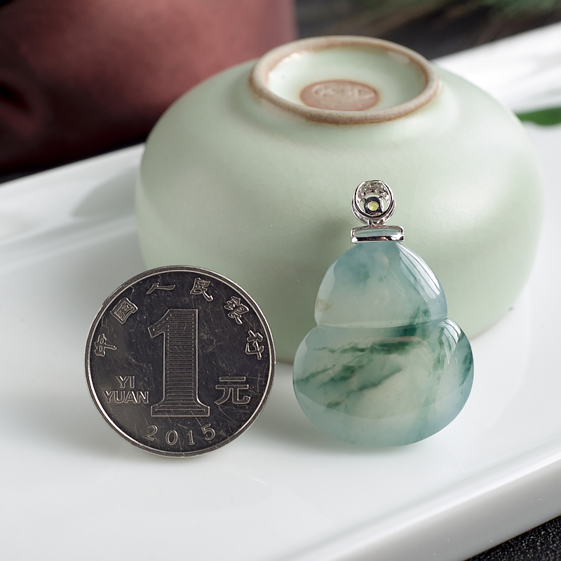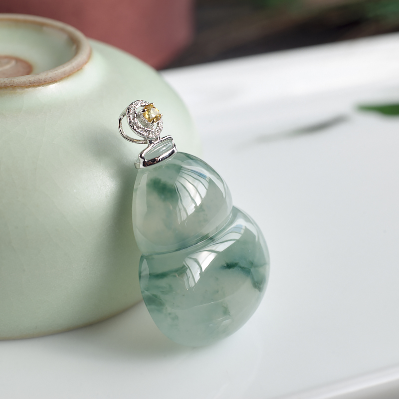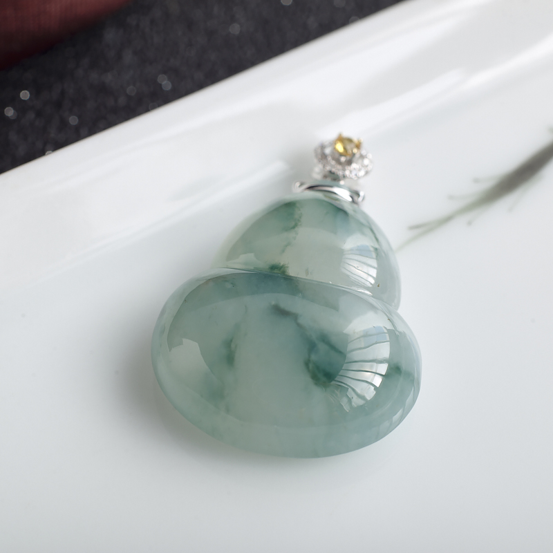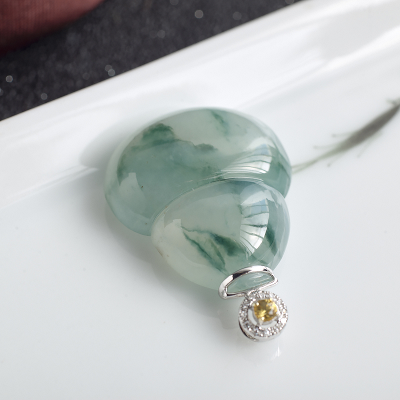 • 18K糯冰种飘花翡翠葫芦吊坠