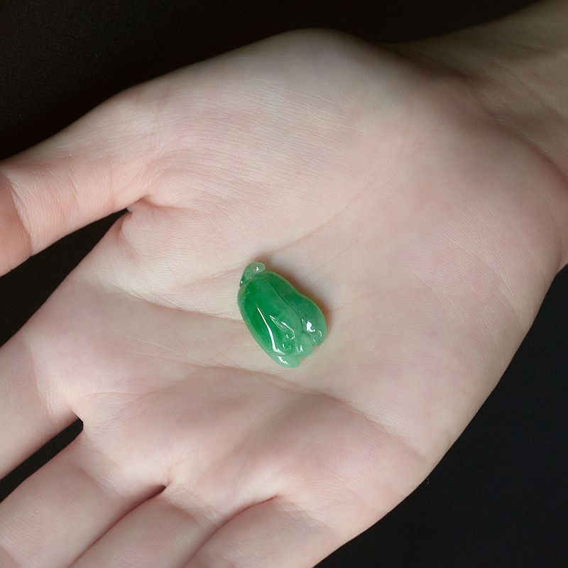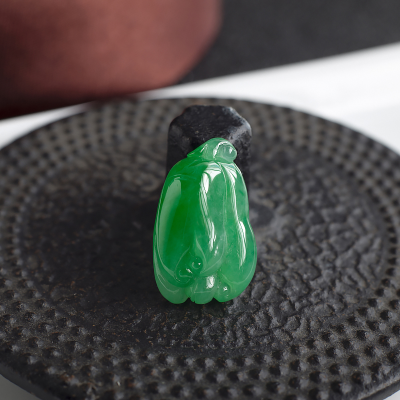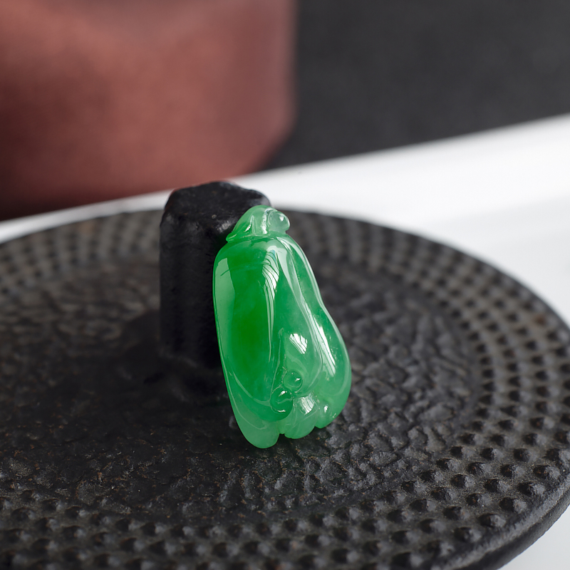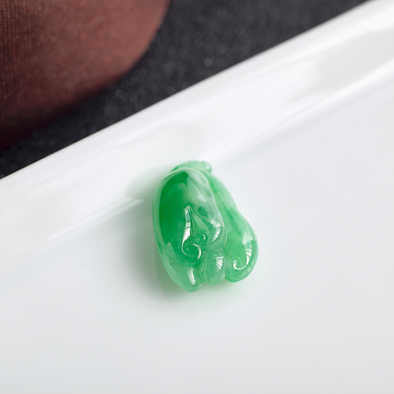 • 糯冰种翠绿翡翠佛手瓜吊坠