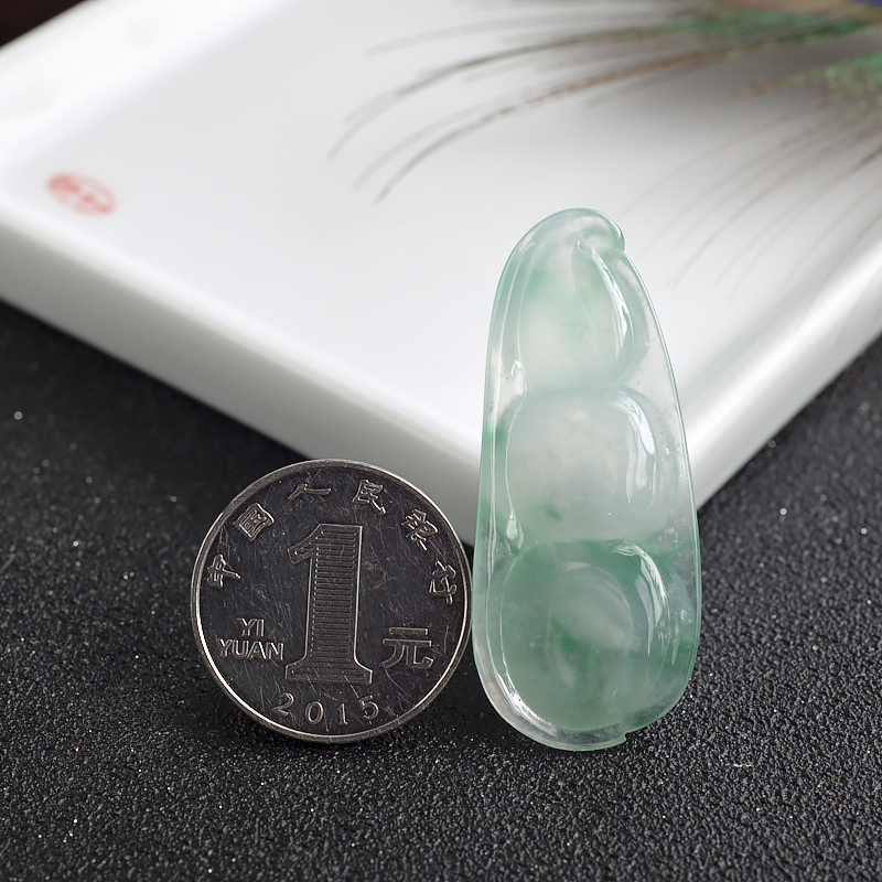 • [名  称] 糯冰种飘花翡翠福豆吊坠
