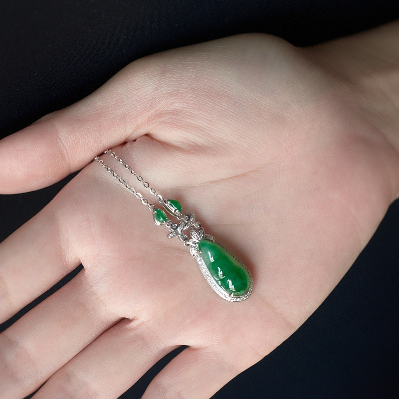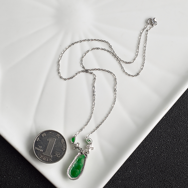 • [名  称] 18K糯冰种翠绿翡翠福豆项链