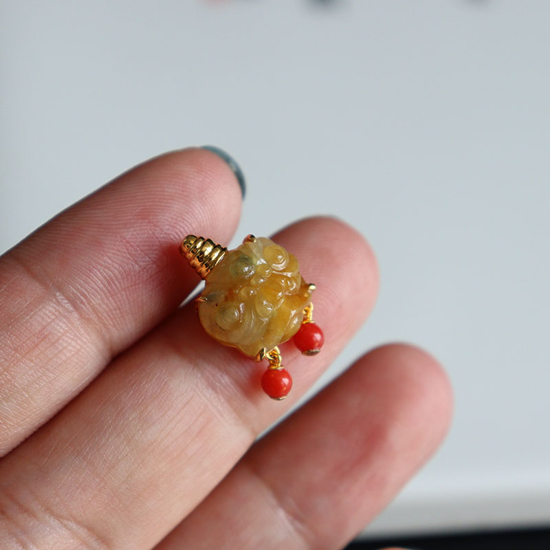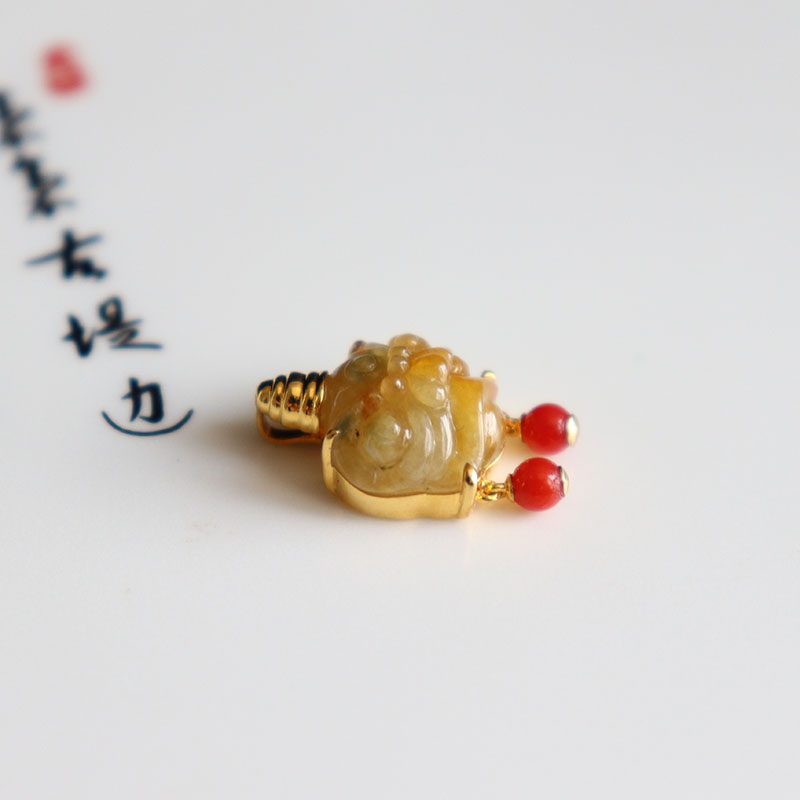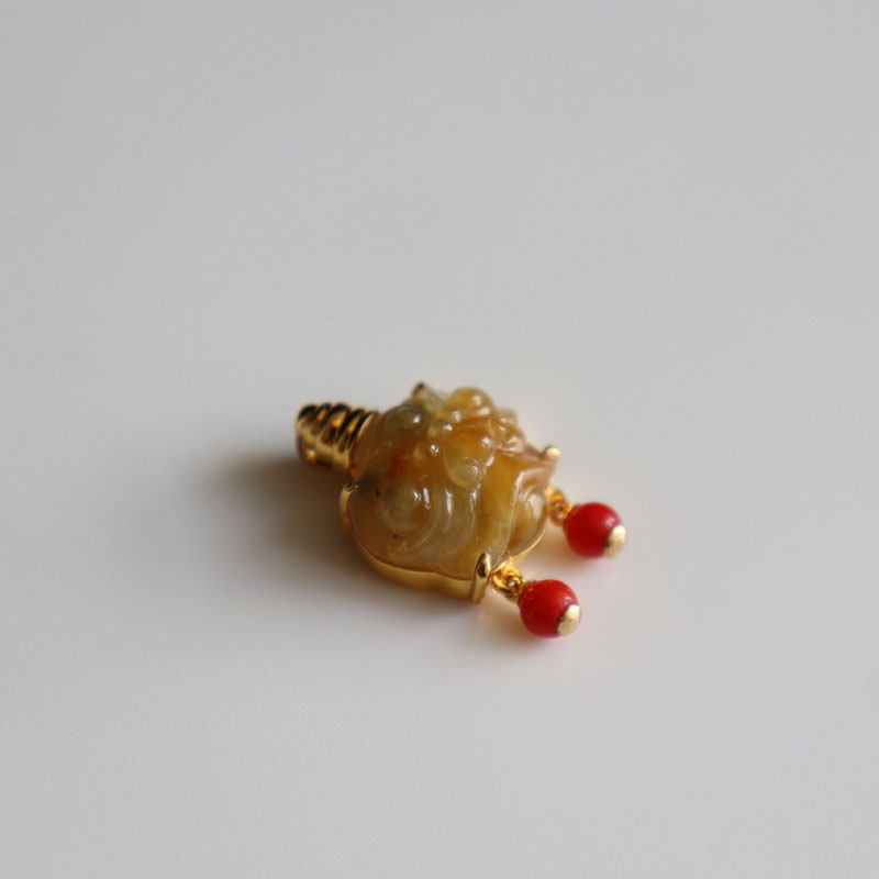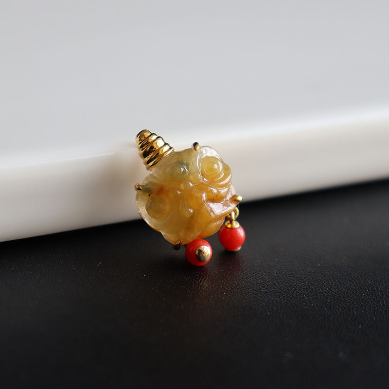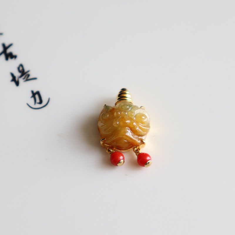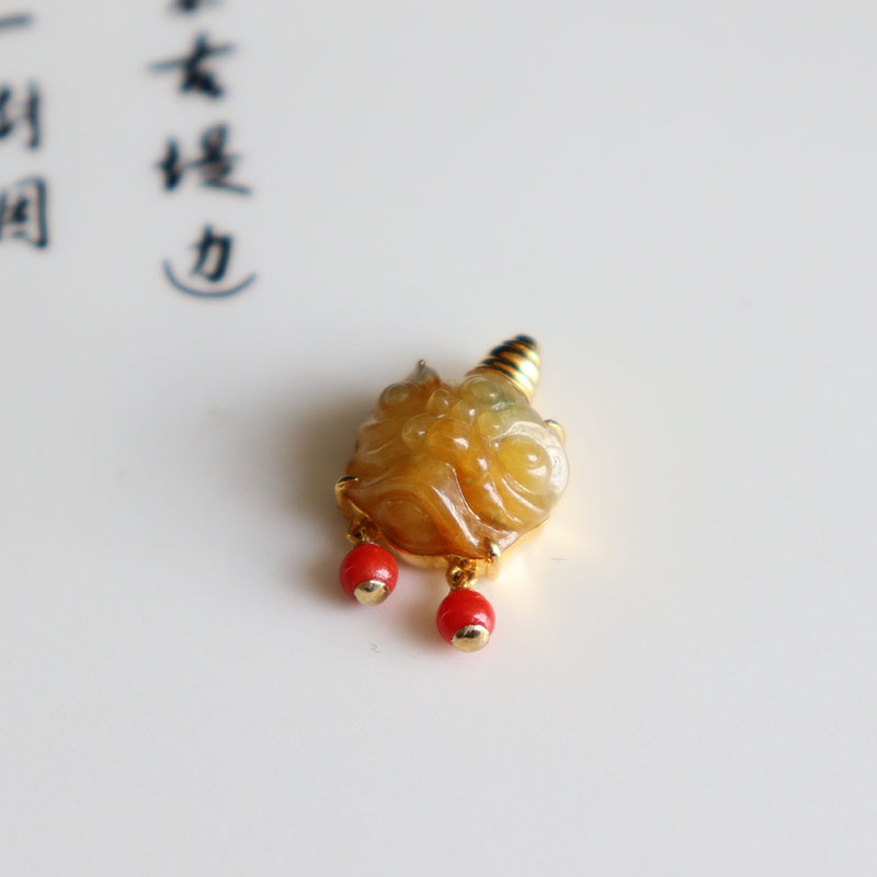 • [名  称] 18k糯冰种黄翡醒狮吊坠