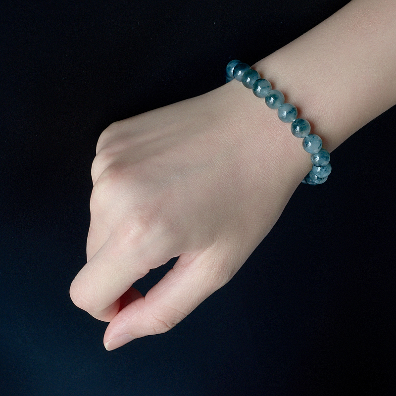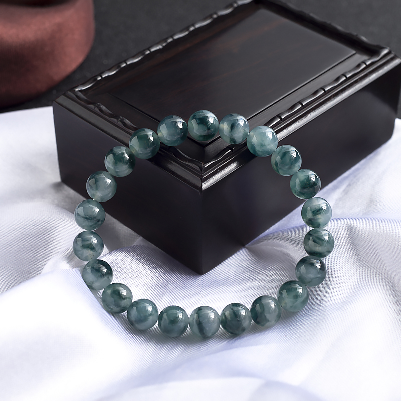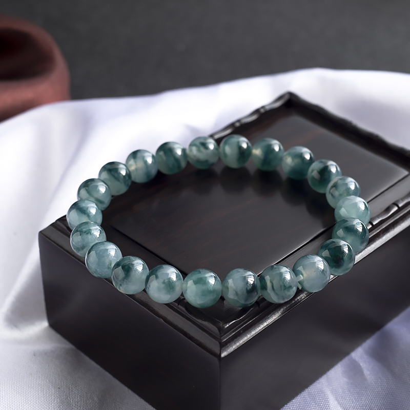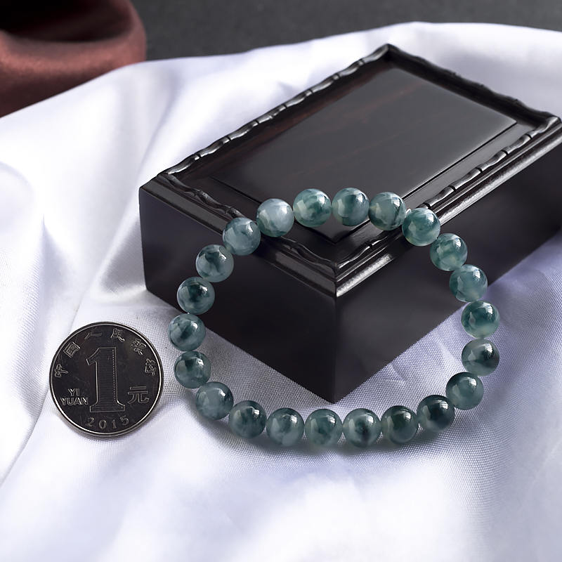 • [名  称] 8mm糯冰种飘花翡翠单圈手串