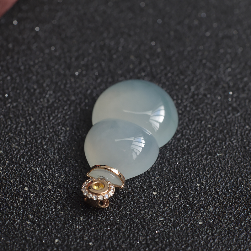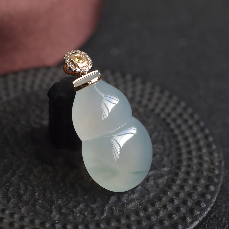 • 18K糯冰种飘翠翡翠葫芦吊坠