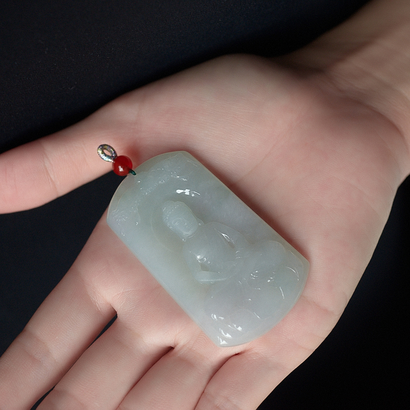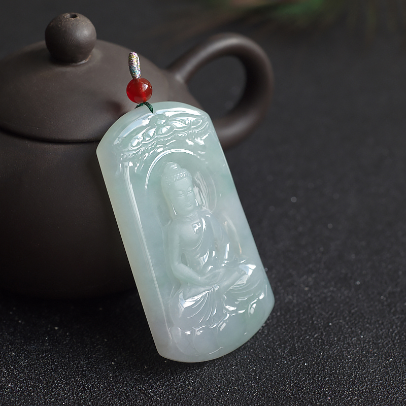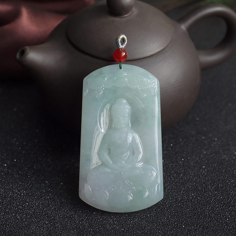 • [名  称] 糯冰种浅绿翡翠佛吊坠