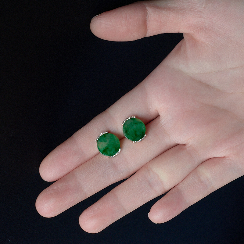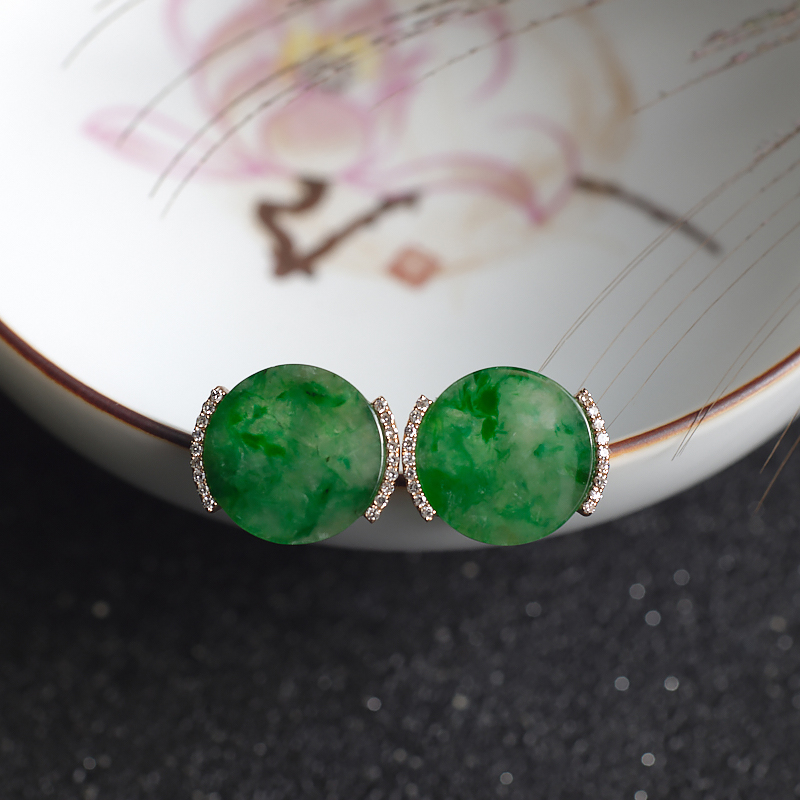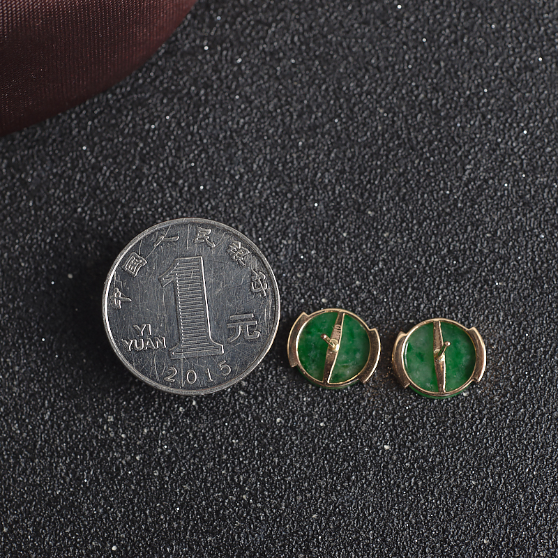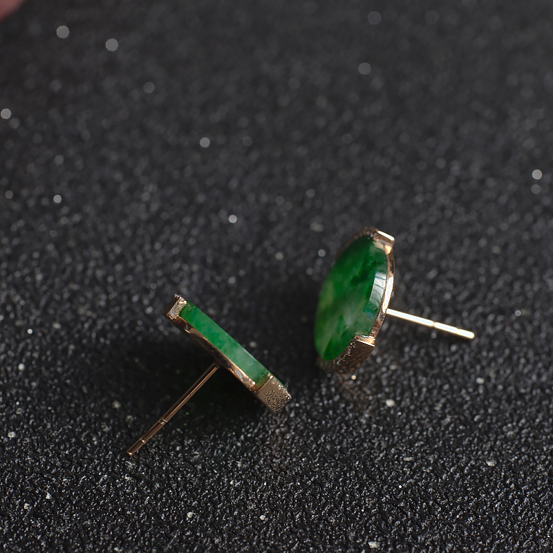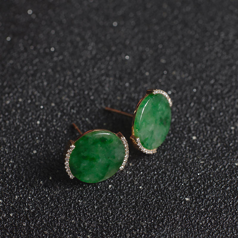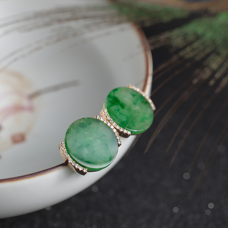 • 18K糯冰种飘翠翡翠圆形耳钉