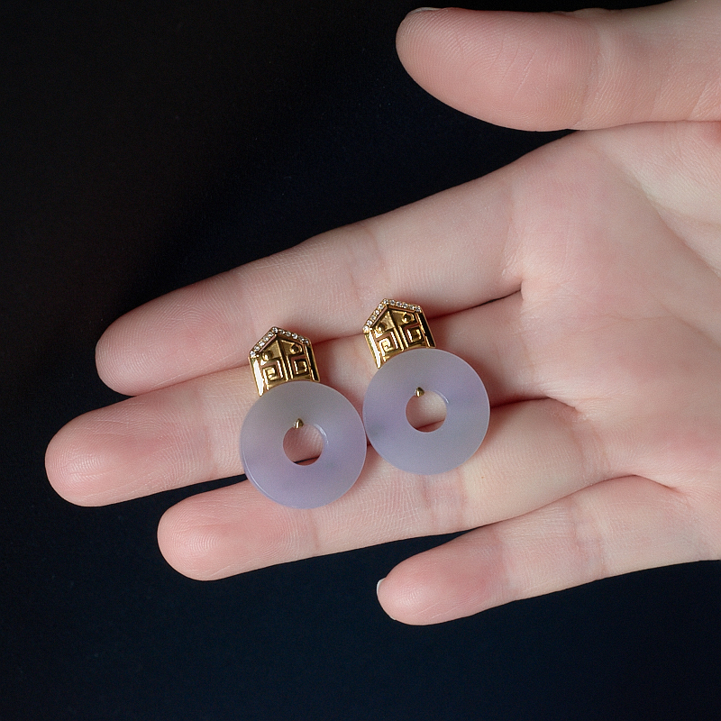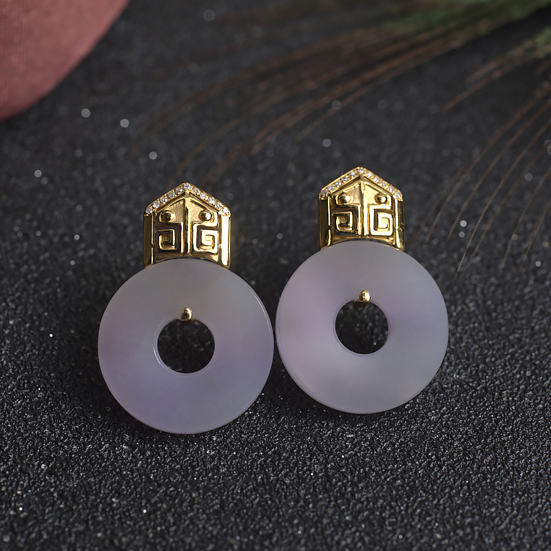 • 18K糯冰种春带彩翡翠圆形耳钉