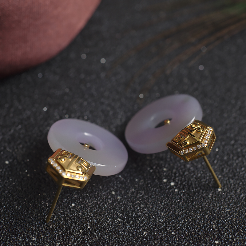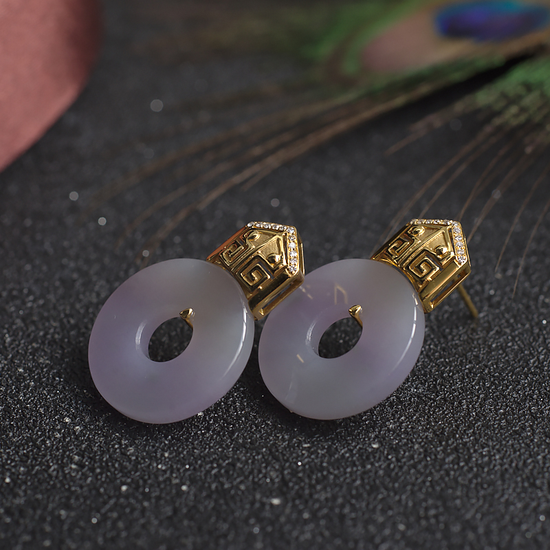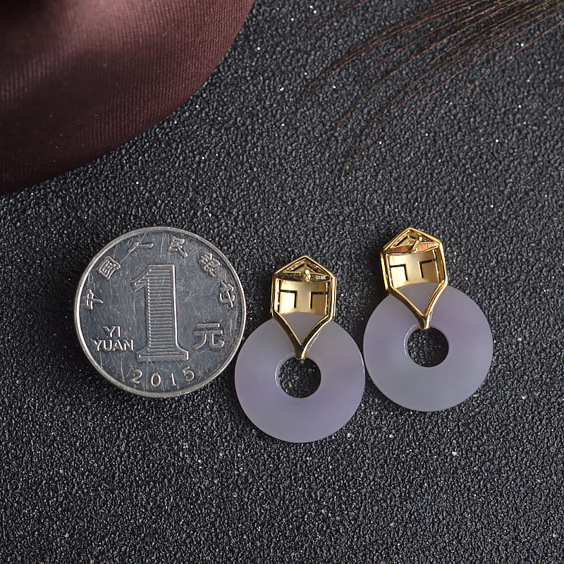 • [名  称] 18K糯冰种春带彩翡翠圆形耳钉