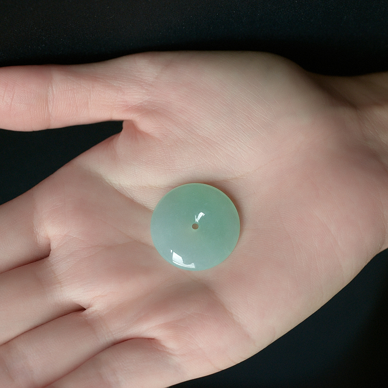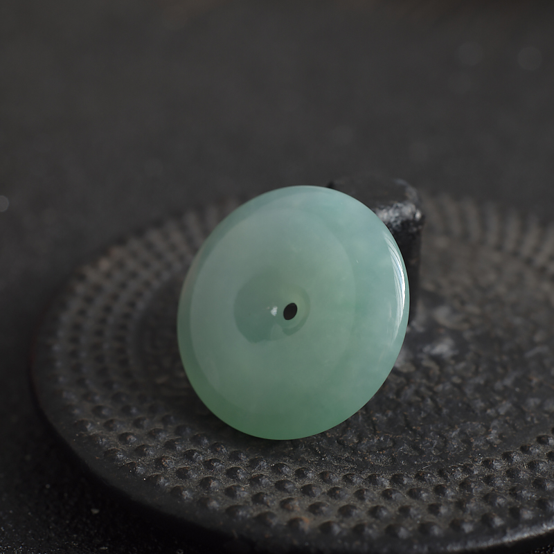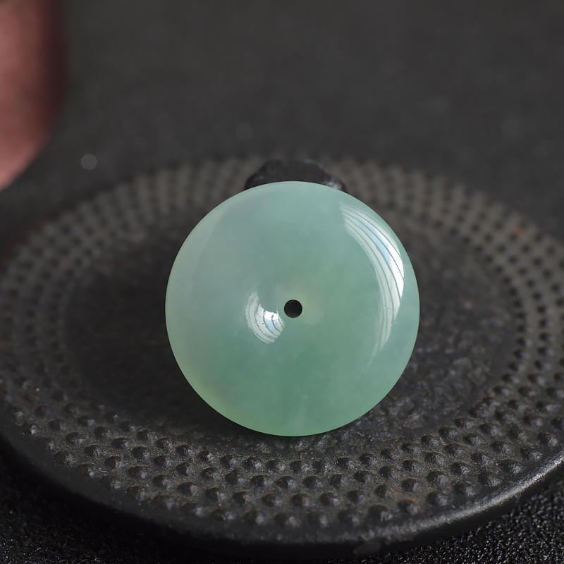 • 糯冰种浅绿翡翠平安扣吊坠