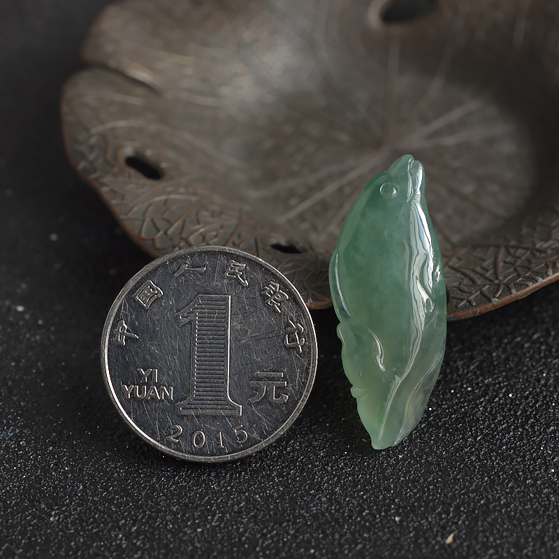 • 糯冰种灰绿翡翠海豚吊坠