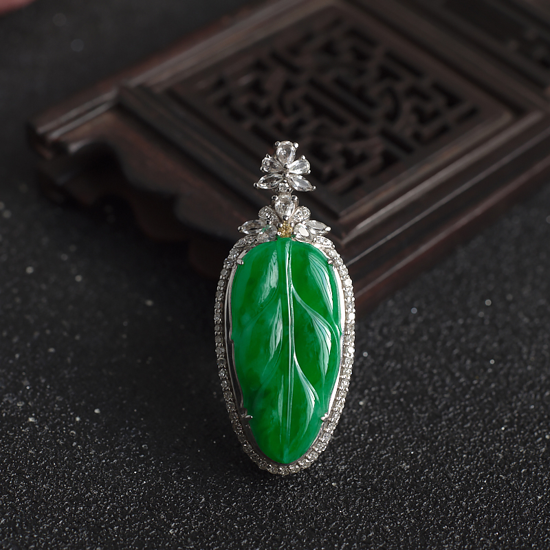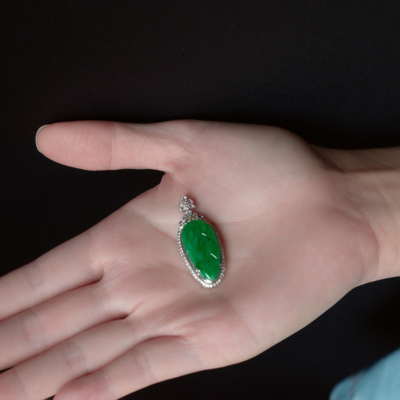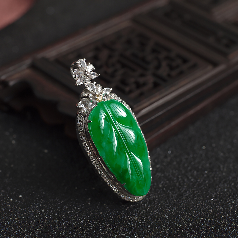 • 18K糯冰种翠绿翡翠金枝玉叶吊坠