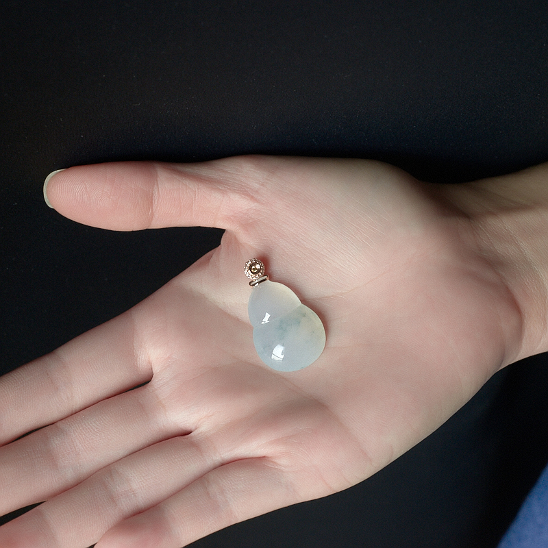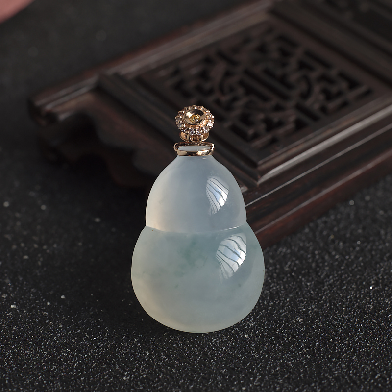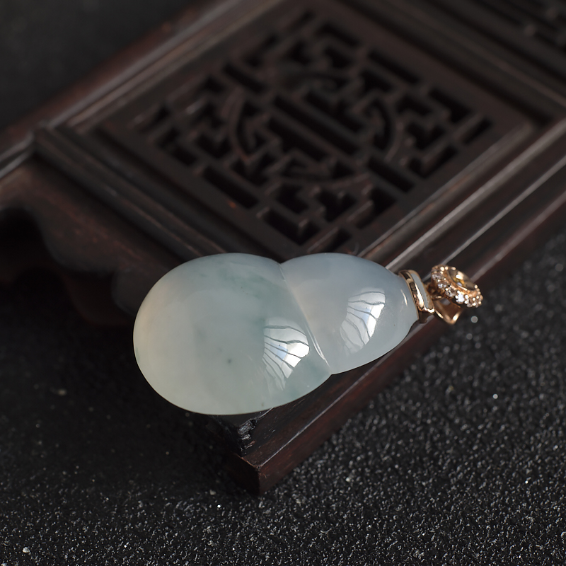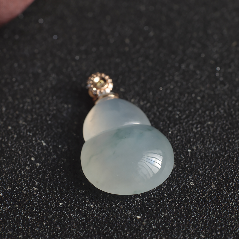 • 18K糯冰种飘花翡翠葫芦吊坠