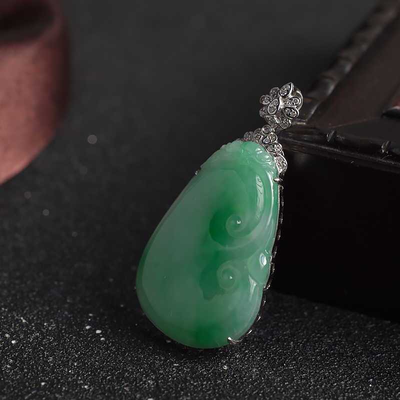 • [名  称] 18K糯冰种飘翠翡翠如意吊坠