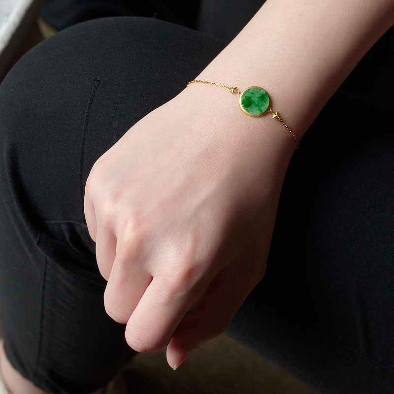• [名  称] 18K糯冰种飘翠翡翠圆形手链