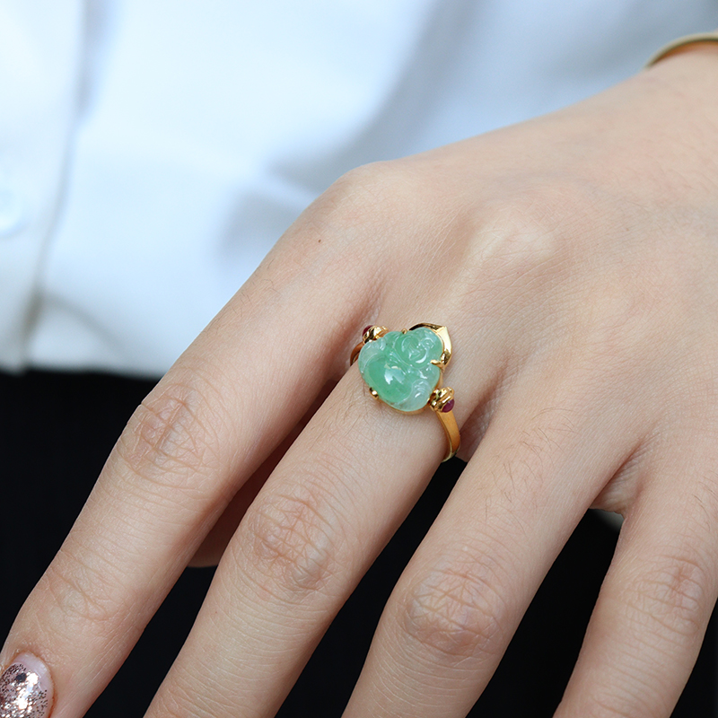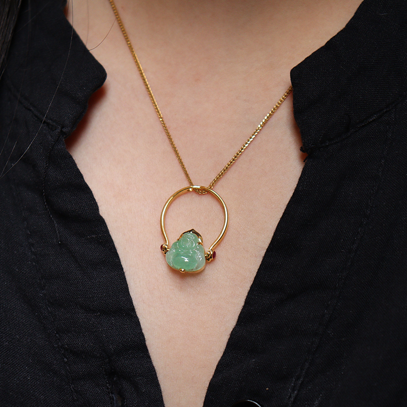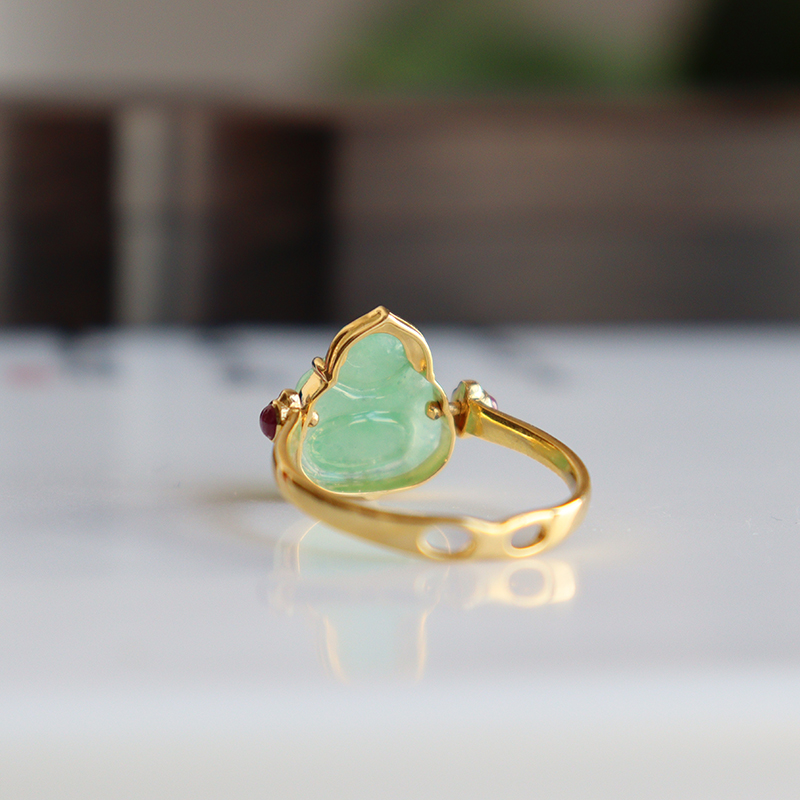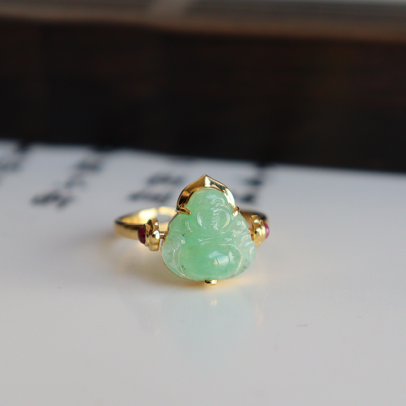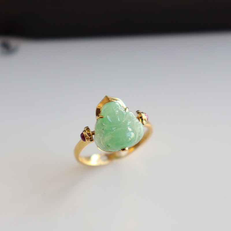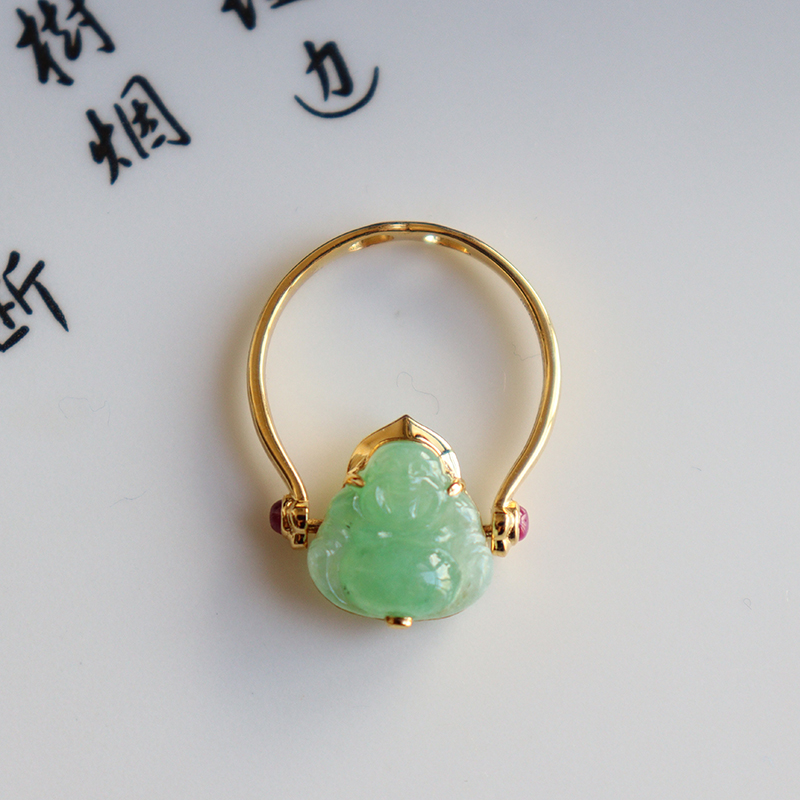 • [名  称] 18k糯冰种浅绿翡翠弥勒佛戒指/吊坠(两用)